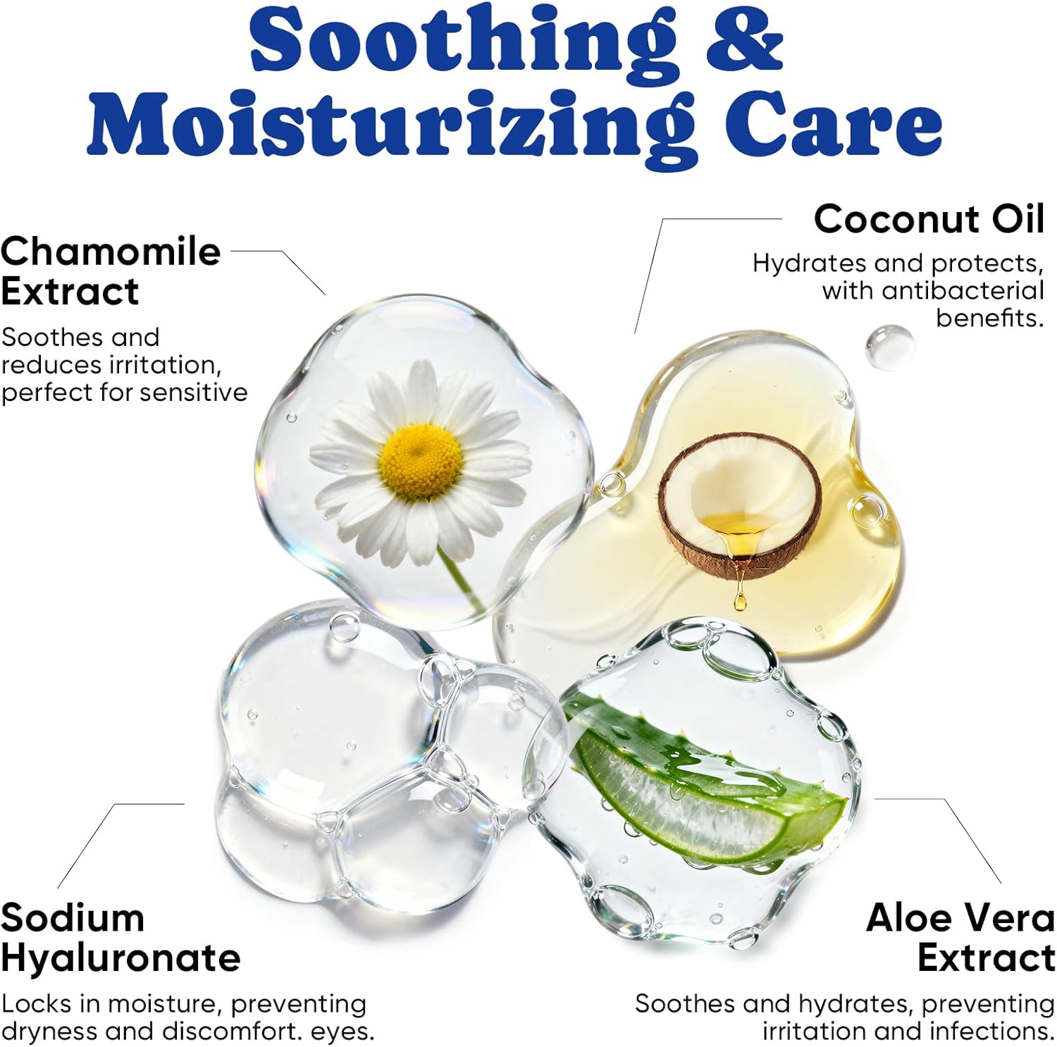 • 【Soothing & Hypoallergenic Formula】Formulated with coconut oil, chamomile, aloe vera, and sodium hyaluronate, the wipes help moisturize, calm irritation, and support comfort around sensitive eyes. Hypoallergenic, alcohol-free, and suitable for regular use.