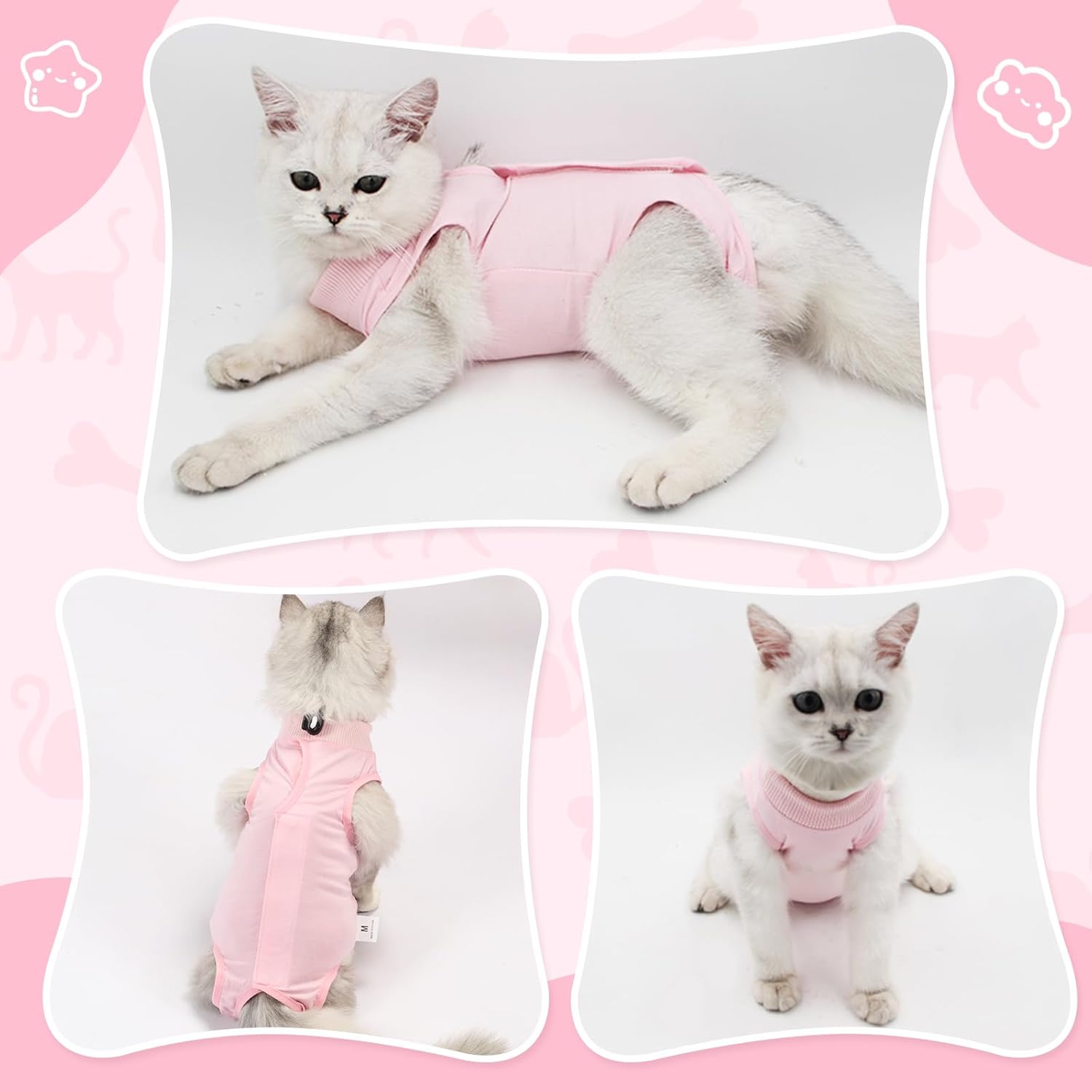About this item ABOUT SIZE: Size S: Chest Girth: 10 - 10.8 in, Back Length: 7.3 in. Size M: Chest Girth: 11 - 13.8 in, Back Length: 10.3 in. Size L: Chest Girth: 14 - 16.8 in, Back Length: 13.3 in. Please measure your cat's data before purchasing. Package includes 1x cat recovery suit female. COMFORT AND SAFETY: The cat spay recovery suit is a perfect alternative to Elizabethan collar, doesn't block your cat's view and is more comfortable than an E-collar, suitable for abdominal wounds and skin diseases. Increase mobility, reduce stress, and speed healing by safely protecting wounds. HARD TO ESCAPE: We improve the design of this cat surgical recovery suit to fit the pets better so that they don’t want to try to escape. Pets could lie down comfortable, the cat onesie for cats allows your cat do anything without feeling obstructed, They could drink water, eat food and use the litter box freely. POTTY USE: Bigger opening at the rear enables cats use the litter tray without opening the kitten recovery suit and no need to roll it up. Keeps pets comfortable and mobile. Protects floor from stain, beds and rugs from getting spoilt. SOFT COTTON FABRIC: Kitten onesie after spay is super breathable and light, moisture absorption makes your cat wear comfortably and helps the wound to heal safely. Let your kitten say goodbye to that pesky Elizabethan collar! › See more product details