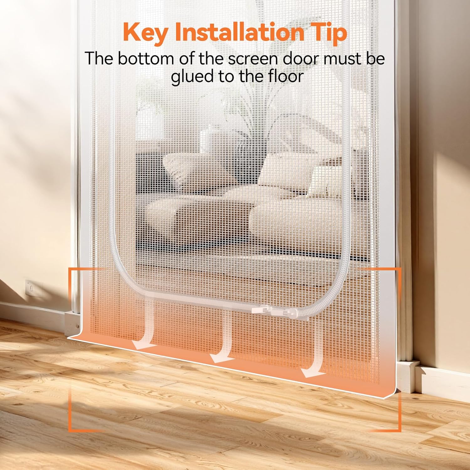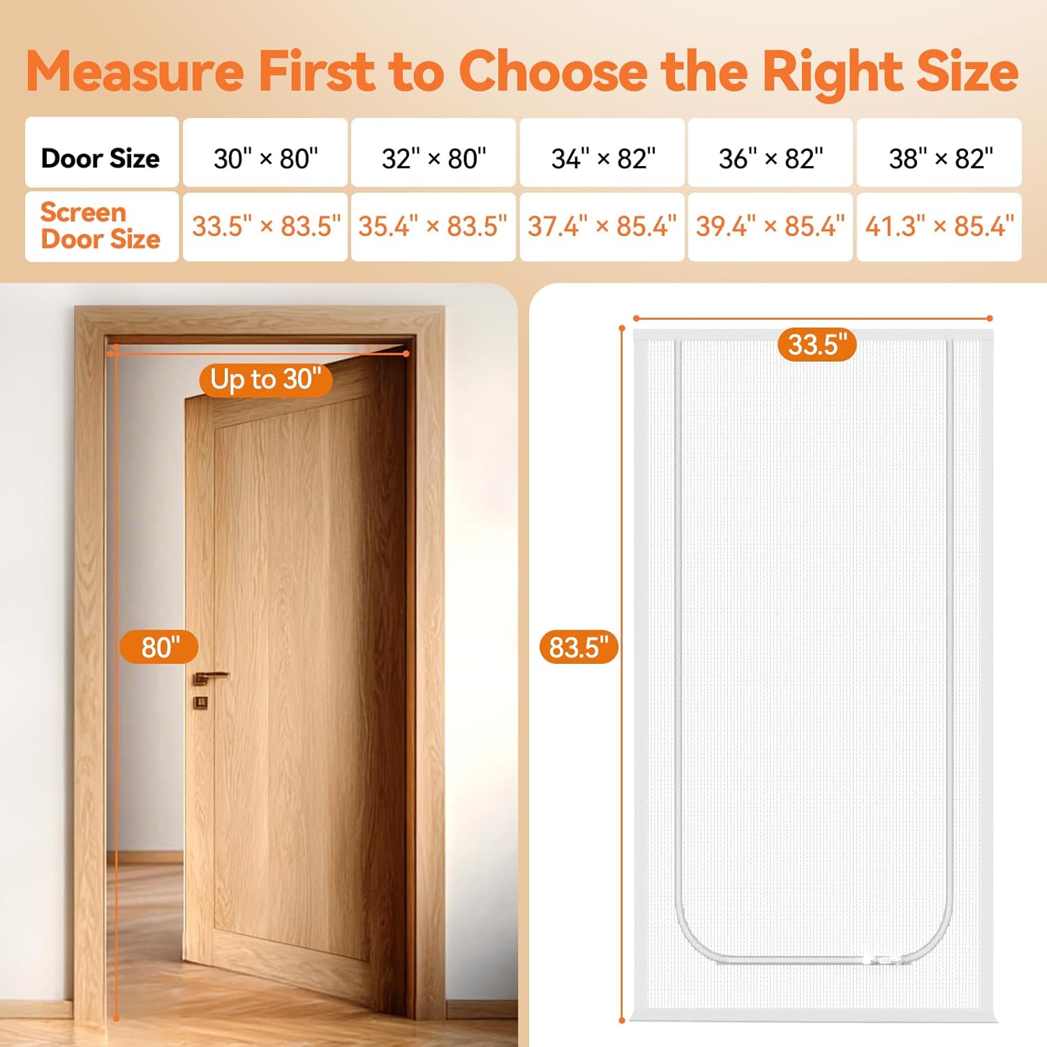 About this item Extra Tall Cat Mesh Gate: The extra tall cat screen door can effectively prevent jumpy cats from entering the kitchen/bedroom/yard or other places; it is also suitable for multiple pet families to use for isolation Anti-Cat Scratch Screen Door: Features a durable rubberized mesh material that provides extra wear resistance compared to standard plastic meshes. The wider 1.6" Velcro ensures the mesh adheres securely to the door frame, offering enhanced cat-proofing Fits Door Sizes Up To 30 x 80": Width up to 30'', length up to 80'' (door size only, not including the door frame). Door frame size requires ≥33.5" at the same time. The actual size of the cat screen door is 33.5*83.5” and its must be affixed to the door frame. Please measure your door in advance to ensure that the right size is selected Double Zipper Door: We've incorporated double zippers on both the interior and exterior of the cat door, making it a breeze for you to open and close while keeping your feline friends securely shut out Easy to Install & Remove: No tools or drilling required. Velcro for bonding can be removed at any time. Versatile for a variety of door types: storm, interior, standard, greenhouse, and more › See more product details