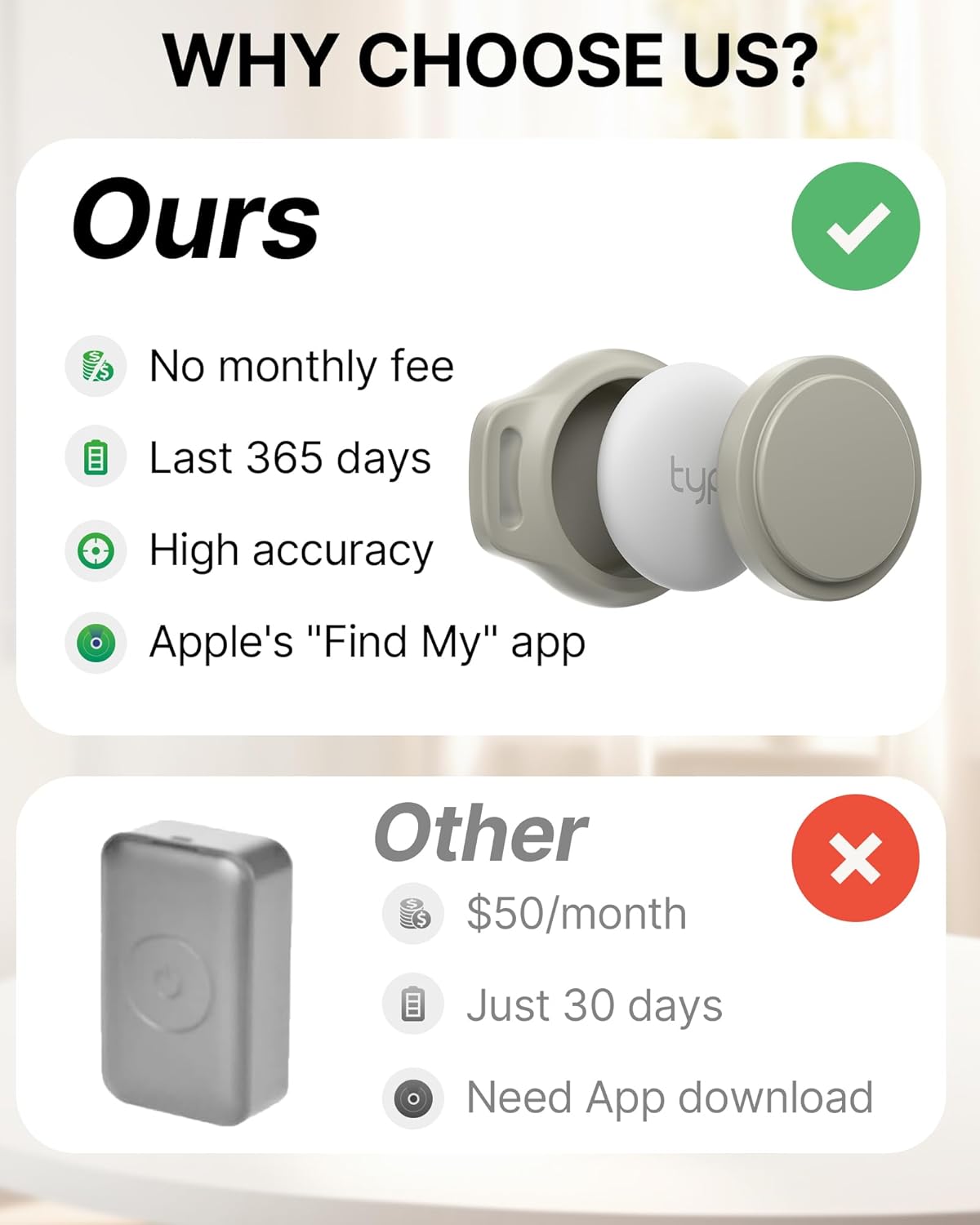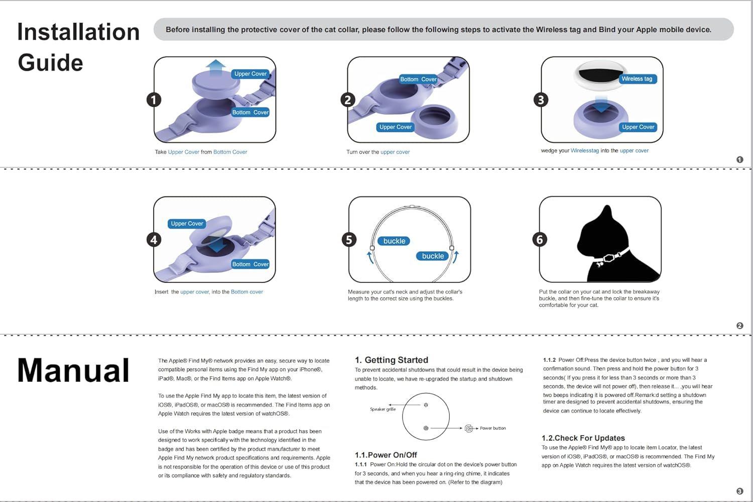 About this item Integrated tracker Holder: Each cat tracker collar comes with a smart finder tag that seamlessly fits in the silicon holder, integrating find my tracking into the collar. The holder is compatible with AirTag, you can also use it as an airtag cat collar.(iOS Only, Not for Android) No Monthly Fee: Our cat collar with tracker is free of any subscription or monthly fee. If you are an iOS user, you can track and locate your pet with just a tap on your iPhone, iPad, or other compatible devices. (Note: Only compatible with Apple iOS) Precise Tracking: When within the bluetooth range, the mini cat tracker will emit a clear, loud beep noise to help you locate your pet. When out of range, it will utilize bluetooth technology and nearby Apple devices for precise global location tracking. (Note: Only compatible with Apple iOS) Adorable Cartoon Design: Elevate your cat's style with our uniquely designed cat tracking collar, featuring cute cartoon patterns that will make every kitty stand out. Perfect for both boy and girl cats, it's the ideal accessory for any playful feline. Ultimate Comfort: Featuring a stretchy elastic weave, our cat tracker collar ensures a snug, comfortable fit that adapts as your kitten grows. Its 1 cm width evenly distributes pressure, making it ideal for extended wear, whether indoors or outdoors. Stay Safe and Seen: Our tractive cat tracker collar boasts a breakaway buckle that breaks away if caught, protecting cats from potential harm. Plus the paw-shaped reflective patterns enhance visibility in low light, keeping your kitten safe at night. Waterproof Protection: Our pet tracker for cats features a soft silicone holder that safeguards the tracker from water, dirt, and daily wear and tear, while the soft, skin-friendly material ensures no irritation to your cat’s neck for all-day comfort. › See more product details