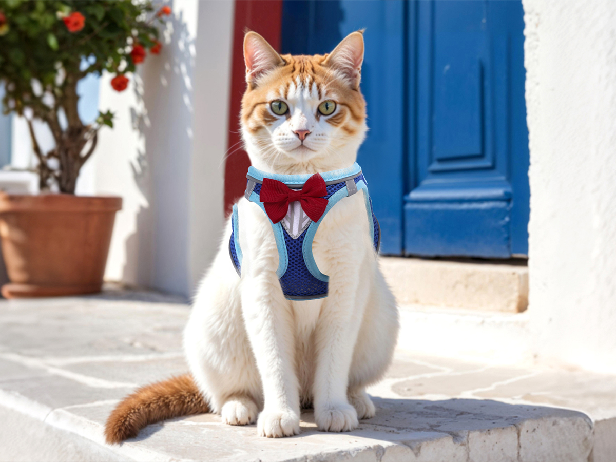 About this item Bright Reflective Strip: Our cat vest harness and leash with reflective strip makes cat visible in low light conditions and improves safety when walking at night. Definitely a reward for increased security Novel Design: Inspired by the famous Detective Conan, our harness for kitten is uniquely designed and full of props. We also equipped the cat with a pair of lensless glasses and a bow to make them look more cool, which is really interesting Easy to Wear: The step in cat vest harness has a buckle ,which can be worn quickly and safely. The adjustable belt allows you to quickly customize the vest for the small frame of the dog and cat, so that they will not slip easily Light and Breathable: The extra small cat harness is made of soft and light mesh material, which can protect your pet firmly and safely, and will not bring great pressure and burden to your pet.What’s more, this material is breathable, which can keep warm in winter and cool in summer.It is comfortable enough for your pet to play more freely and vividly Escape-proof Cat Harness: Our tiny kitten harness can wrap cats comfortably in 360 degrees. Suitable for daily walking, jogging, training, and any outdoor recreations. With NCMAMA escape-proof cat harness, it is easy to take the kitten to a strange place to travel, and no longer have to worry about the cat getting lost › See more product details