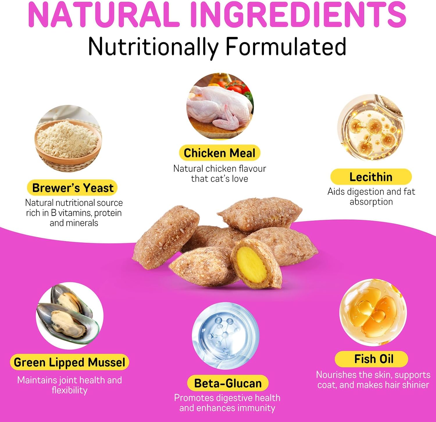 Cat Vitamins Chews, 15 in 1 Cat Multivitamin Treats for Health, Immune, Joint Support, Skin & Coat, & Digestion, Vitamins with Taurine, Omega-3s & Probiotics, Chicken (30 Day Supply)