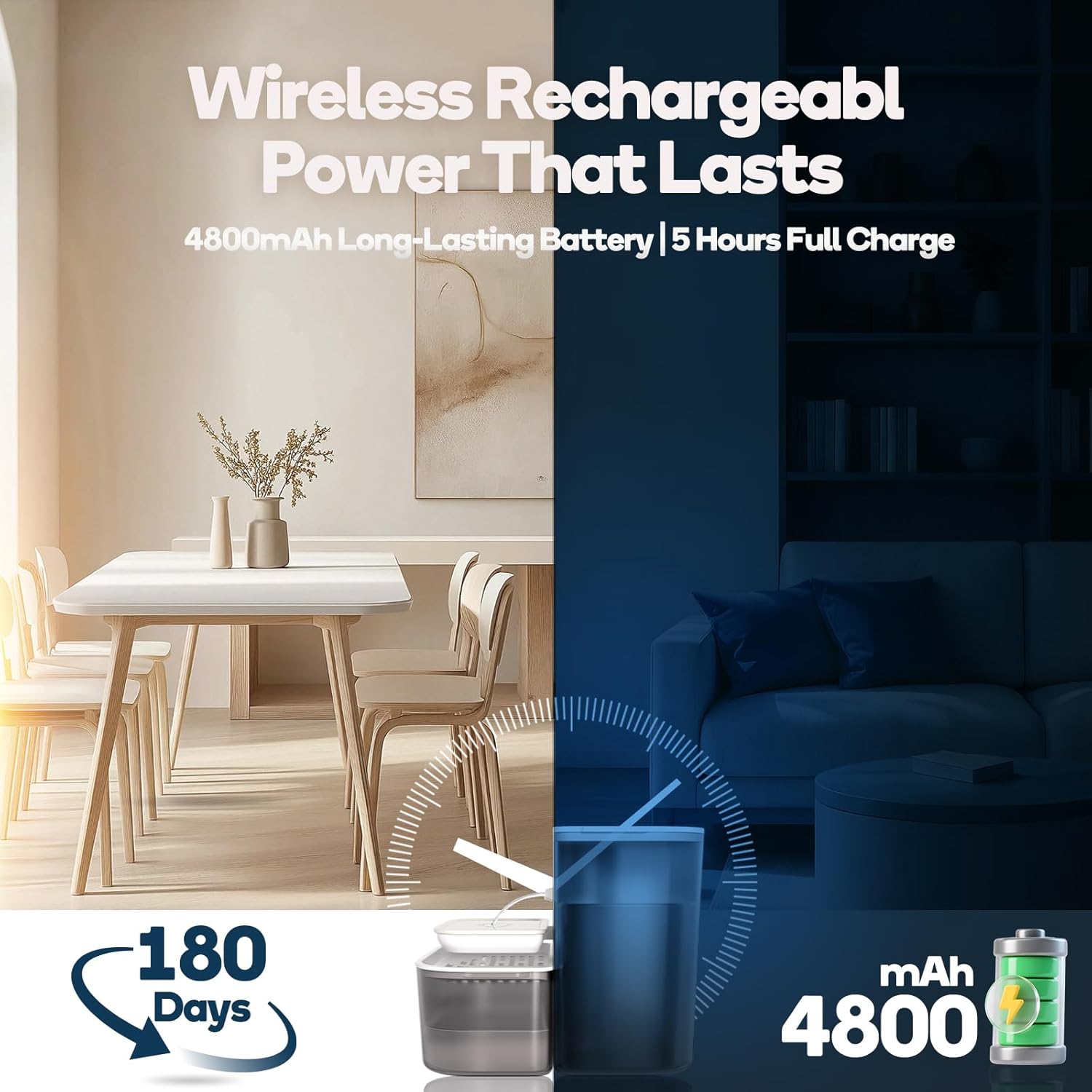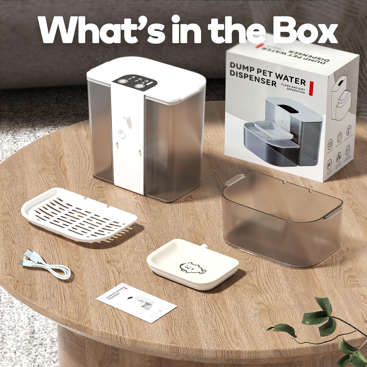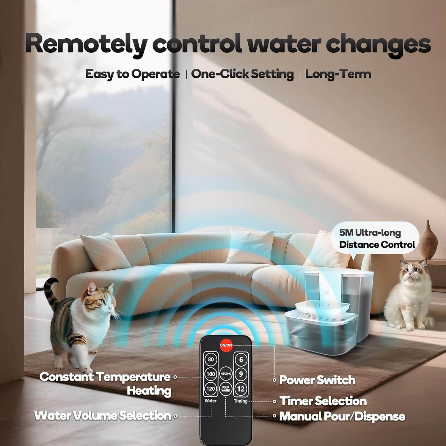 Cat Water Fountain with Heating, 4.5L Automatic Water Dispenser for Cats, Ceramic Bowl, No Filters, Wastewater Separation, Wireless Water Dispenser for Cats and Small Dogs