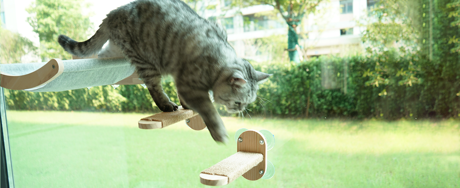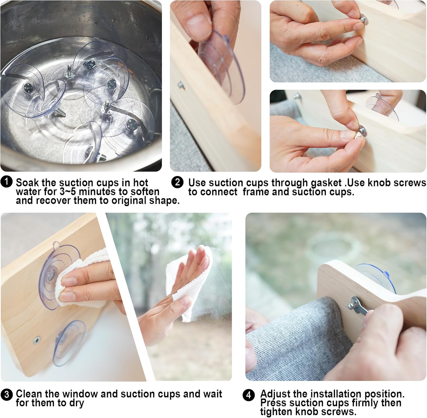 About this item 【Original 360° Cat Window Perch & Steps】Cats love being up high to get a view of the birds, squirrels, and neighbors. Our cat hammock for window is an exceptional spot for climbing and bird watching 【Combo Pack】 - You will get 2 cat window steps and 1 cat window perch. You are free to mix and match to plan a play route for your cat to fully enjoy the sunbath and bird watching. 【DIY Furniture Decoration】 - A variety of matching cat window perch and stairs can adapt to different spaces and needs, which can be used separately or matched to form an exclusive territory for cats. The height and position can be independently adjusted to easily meet the needs of cat-owning families. 【Natural Sisal & Solid Wood Material】- The main material of our cat windowsill bed and window shelf is high quality wood and natural sisal, safe and non-toxic 【Extra Suction Cup】: Suction cup material is prone to aging when exposed to sunlight for a long time, so we have a spare suction cup included › See more product details