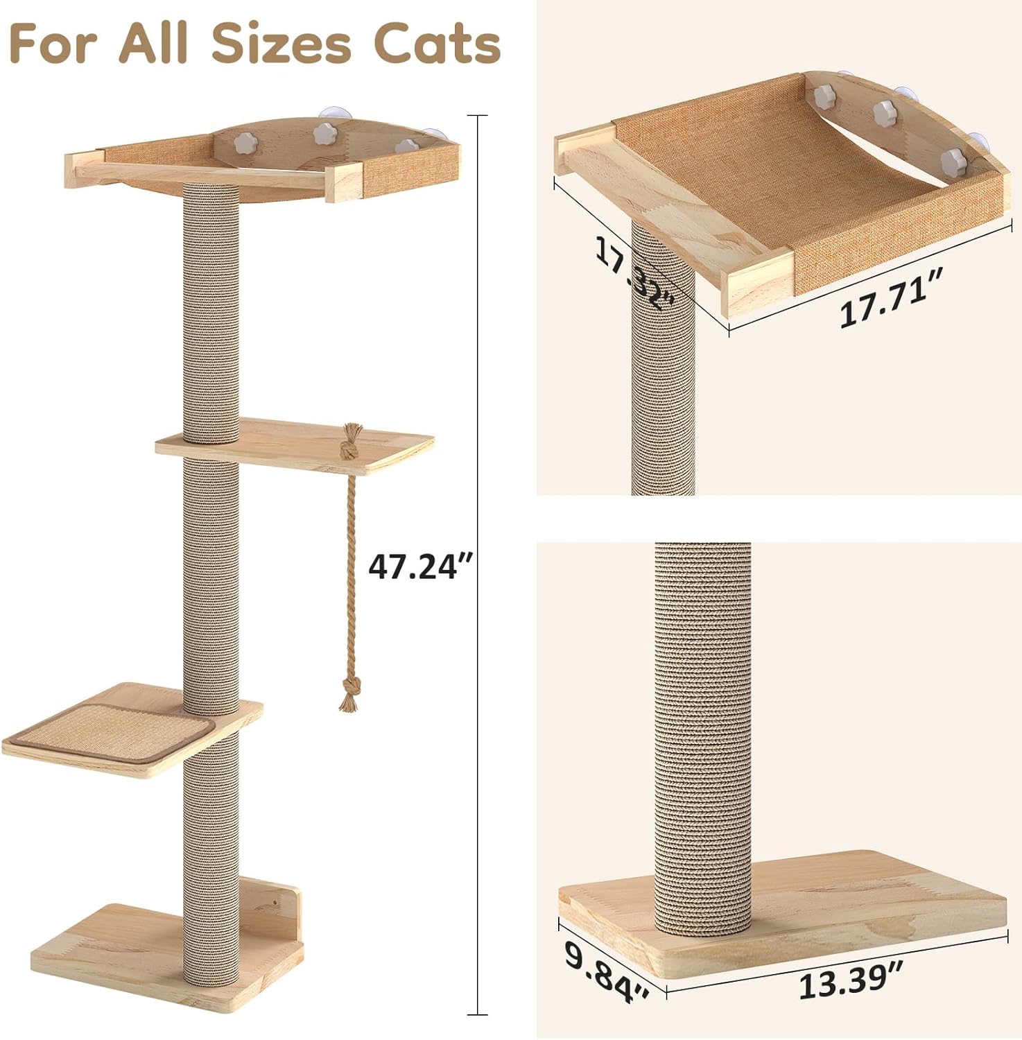 Give your cats a dream spot to relax, scratch, play and observe the world with Yafylly window cat perch. Well made from solid wood, it features a comfortable hammock bed, sisal scratching posts, and climbing platforms. The durable suction cups securely attach to any window, supporting up to 25 lbs. This widow perch is a perfect "cat kingdom" for sunbathing, bird-watching, lounging, soaring views and endless play.
