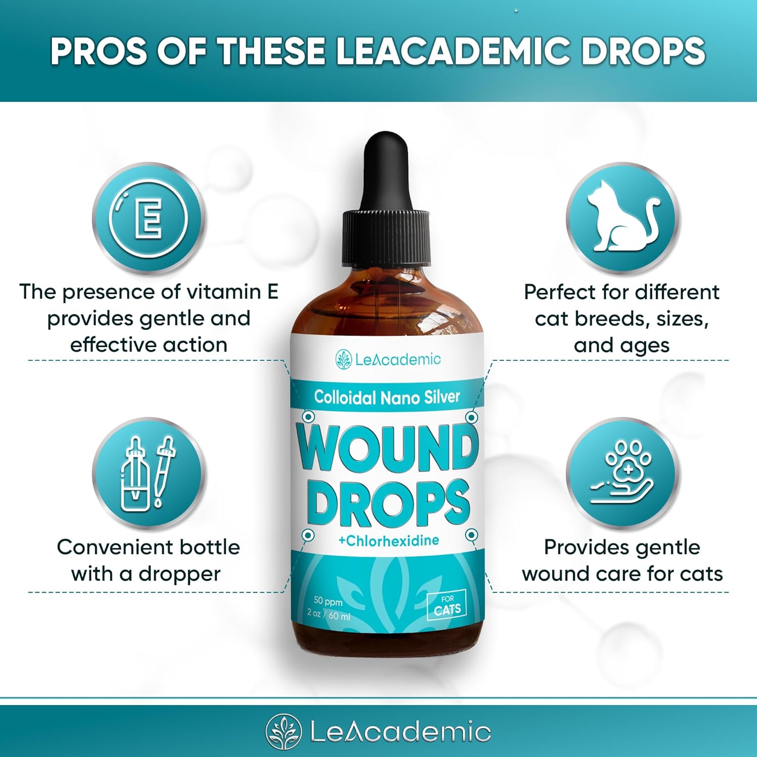 ๐๐๐ ๐ฃ๐ฅ๐ข๐ฉ๐๐ ๐๐ข๐ฅ๐ ๐จ๐๐: Silver + Chlorhexidine = double healing and soothing action. No artificial ingredients! Pure composition with Vitamin E, Matrine extract liquid, and Allantoin components. ๐๐๐ข๐ฅ๐๐๐ง ๐ง๐๐ ๐ช๐ข๐จ๐ก๐๐ฆ: Does your beloved cat need help with itching, cuts, scratches, bites, sutures after surgery, etc? Our cat Wound Drops product may help different young and adult cats. ๐๐๐ฅ๐ข๐ฃ๐ฆ ๐๐ข๐ฅ๐ ๐๐ข๐ฅ ๐๐๐ง๐ฆ: This LeAcademic Silver Wound Drops product is provided in a 2 oz bottle, a super-convenient pack for cat owners. ๐ ๐๐ข๐ฅ ๐๐๐งโ๐ฆ ๐ฆ๐๐๐ก ๐๐๐ฅ๐ & ๐๐๐๐ฃ: This improved product quickly absorbs and gently acts on the catโs skin. It is safe for use around the mouth, nose, ears, and eyes. ๐๐ฅ๐๐๐จ๐ก๐ ๐ฃ๐ข๐๐๐๐ฌ ๐๐ข๐ฅ ๐ข๐ช๐ก๐๐ฅ๐ฆ: If you get a damaged product or are unsatisfied with it, we offer a compensation. Our team is always in touch with you! โบ See more product details