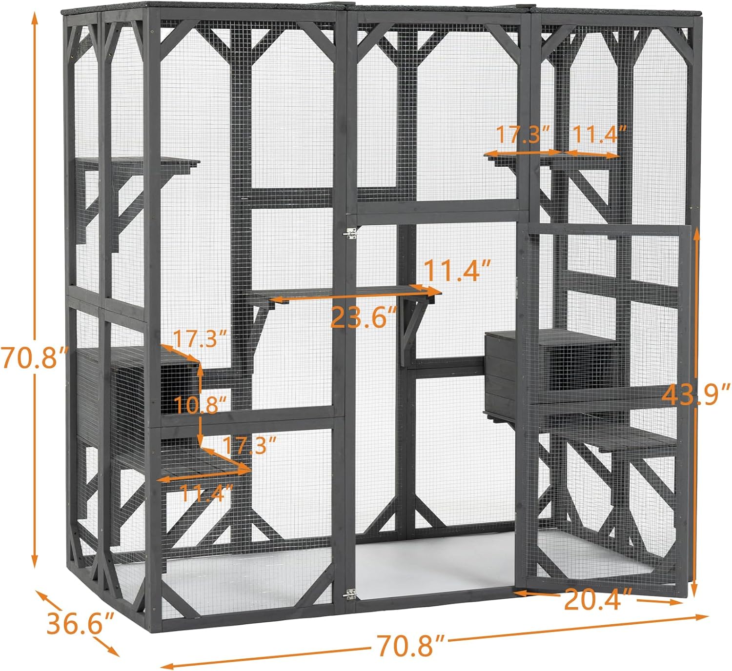 • 5 Jumping Platforms + 2 Condos, Unlock Dual Fun & Rest Experience for Cats:The 71cm-high spacious enclosure is equipped with 5 jumping platforms to satisfy cats' climbing instinct; 2 independent resting condos allow them to curl up and relax after playing, covering your pets' daily activities and sleeping needs in one stop.