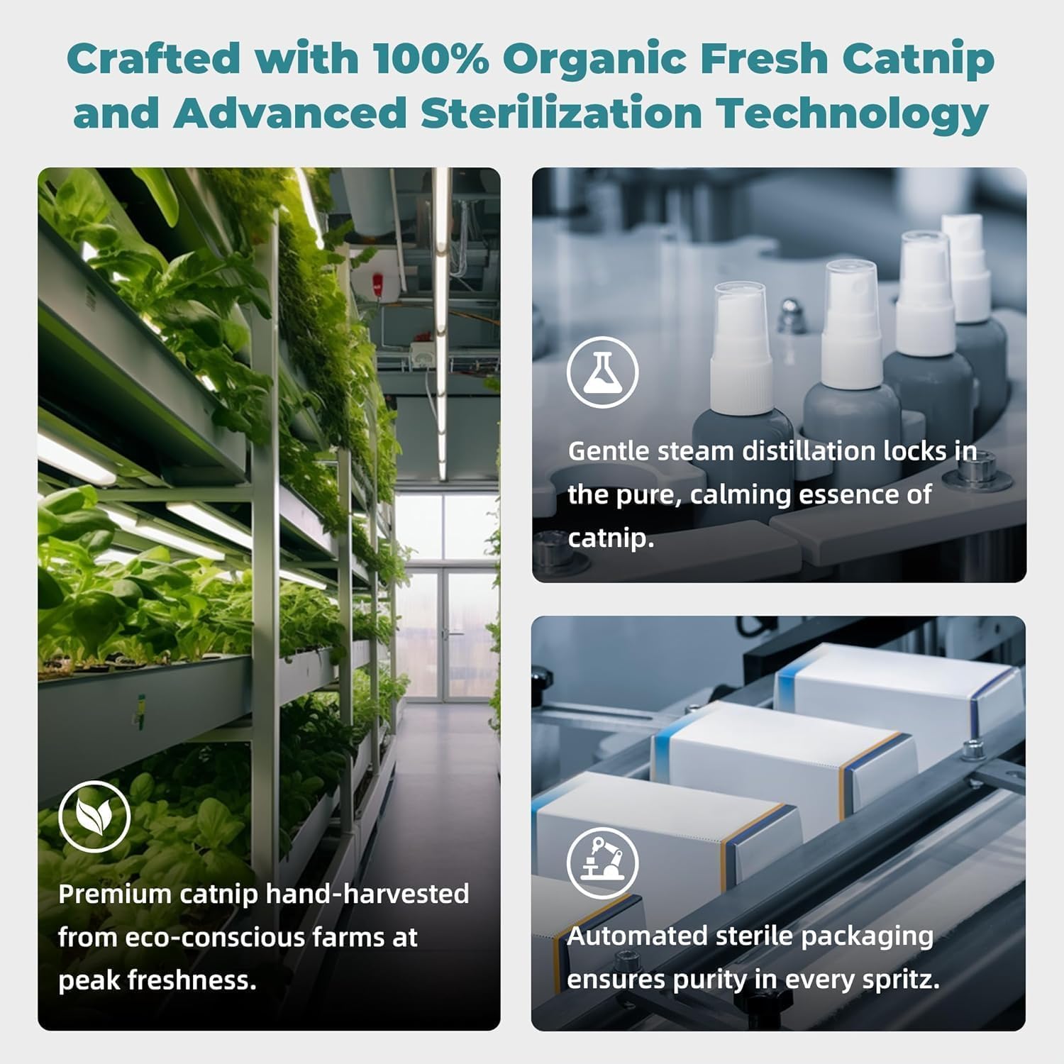 100% Organic Catnip Formula:Made from pesticide-free, certified organic catnip grown in eco-friendly farms. Our natural spray retains maximum nepetalactone (the "happy compound") to deliver safe, potent effects for cats and kittens without harsh chemicals or additives. Energize & Calm in One Spray:Unleash playful energy with a quick spritz! The organic catnip triggers euphoric reactions (rolling, flipping, zoomies!), followed by deep relaxation—perfect for reducing stress, anxiety, and boredom in indoor cats. Revive Forgotten Toys Instantly:Turn old toys into irresistible favorites! A burst of our minty-fresh spray reignites your cat’s curiosity, saving you money on new toys while keeping them engaged for hours. Train Smarter, Not Harder:Redirect scratching and destructive habits effortlessly. Spray on scratching posts or near furniture to naturally attract cats away from unwanted areas—no yelling, no mess! Mess-Free Magic in Seconds:No more vacuuming scattered leaves! The precision spray bottle delivers controlled, residue-free application. Simply mist toys, beds, or play zones for instant fun—ideal for busy pet parents. Worry-free service: Your satisfaction is our top priority. Should you encounter any issues, please contact our 24/7 customer service team. We are committed to resolving your concerns promptly and ensuring a worry-free experience. If we fail to address the problem to your satisfaction, a refund will be provided. › See more product details