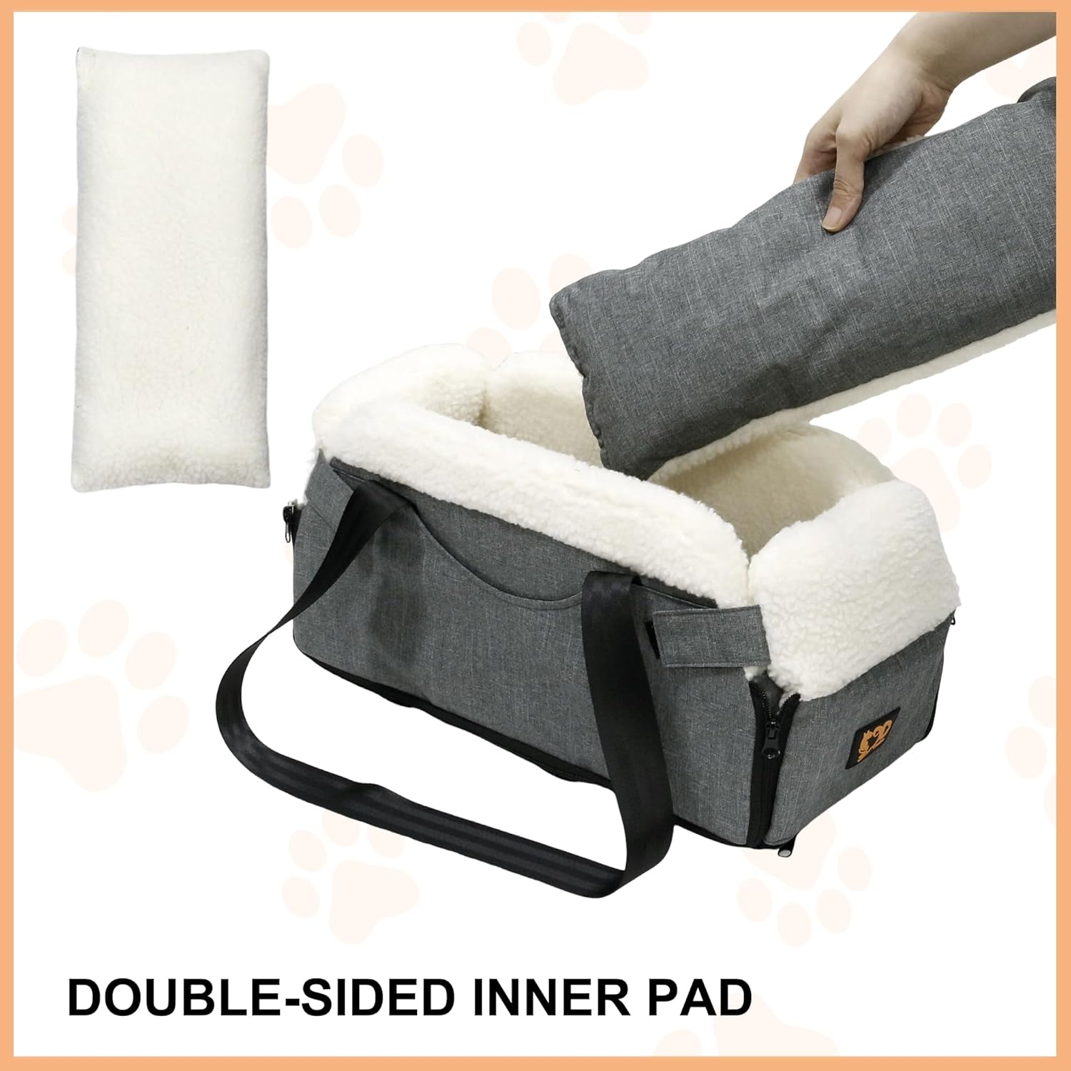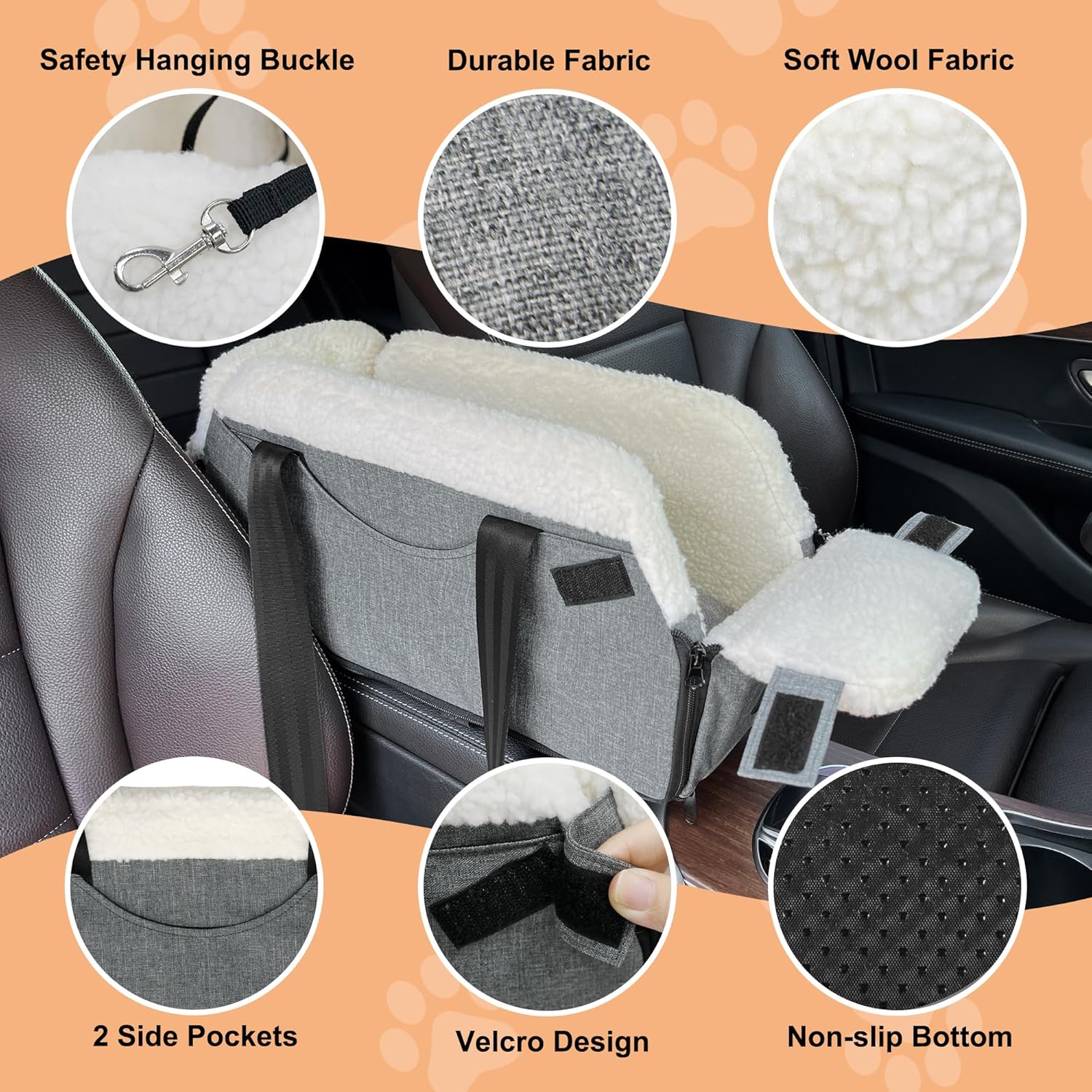 About this item Portable & Versatile Design: This lightweight and sturdy pet car seat offers a convenient way to transport your dog safely while doubling as a cozy bed or carrier for home or travel. Plush Lambswool Interior: The ultra-soft, fleece-like lining provides exceptional comfort, keeping your pet warm and snug during travling, just like their favorite blanket at home. Elevated & Secure Positioning: The raised design gives your pet a better view while preventing them from roaming, ensuring both safety and enjoyment on the road. Easy-Clean & Durable Construction: Made with high-quality, wear-resistant fabric for hassle-free washing, maintaining a fresh and hygienic space for your furry friend. Calming & Bonding Experience: Designed to sit close to you, this seat helps reduce travel anxiety, letting your dog relax in a soft, pillowed nest while staying connected with you. › See more product details