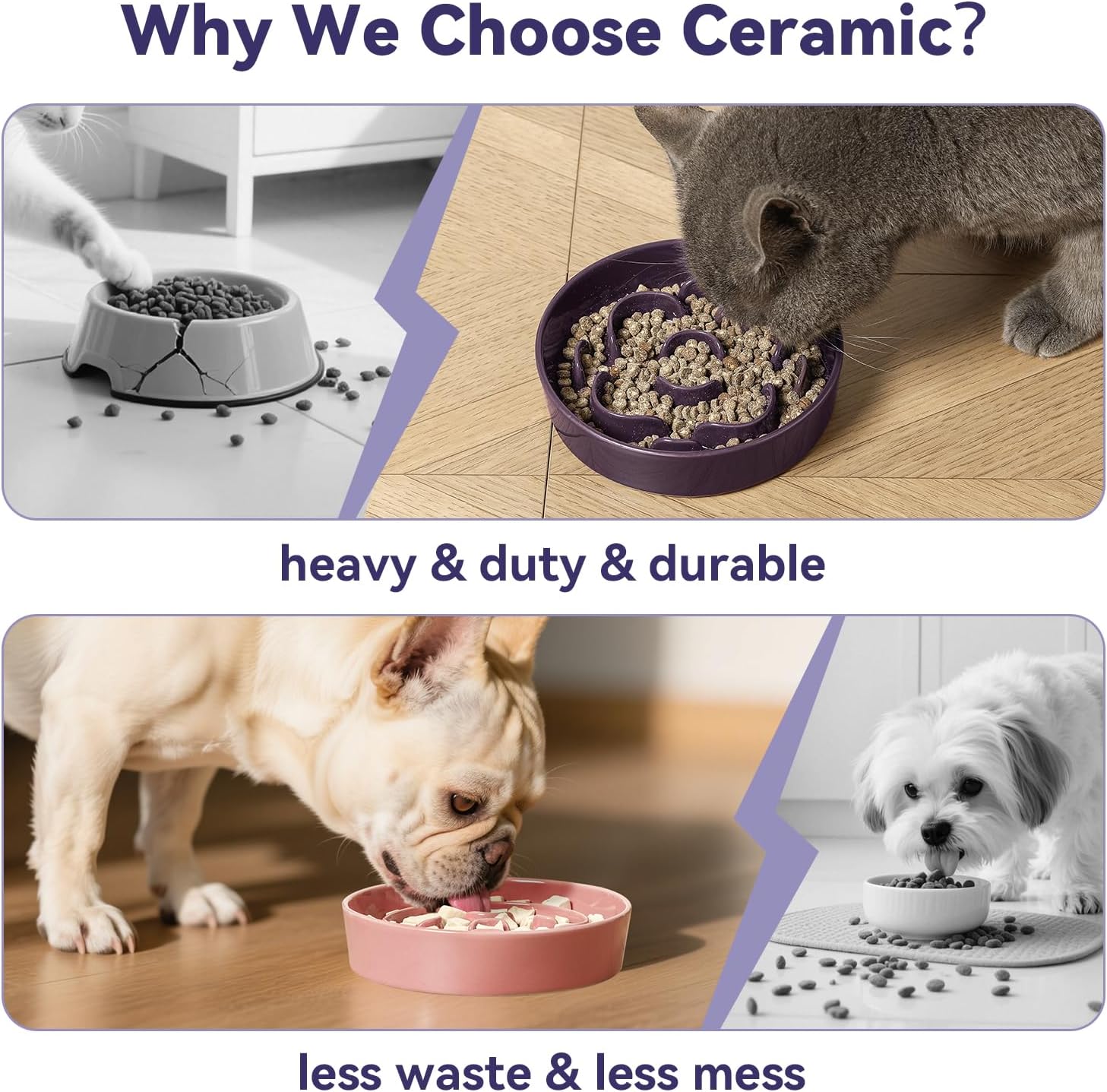 About this item Make Mealtime Healthier & Smarter - Overeating can lead to bloating, vomiting, and obesity in small dogs. This ceramic slow feeder bowl with six slow-feed designs provides unique levels of challenge—pick the one that best suits your pet’s eating habits. Stay-Put Design for a Cleaner Floor - Equipped with non-slip foot pads, this ceramic dog feeder stays in place during use. Prevents bowls from sliding and food from spilling—great for enthusiastic eaters. Premium Ceramic - Safe, Durable, and Heavy-Duty - Crafted from food-grade ceramic, this slow feed bowl is lead-free, cadmium-free, and chew-resistant. Heavy-duty weight keeps it stable during use, providing a safer, longer-lasting choice for daily feeding. Versatile Feeding for Every Meal - Suitable for dry, wet, or fresh meals. Designed to encourage slower eating and reduce the risk of digestive discomfort, making it ideal for everyday feeding routines. Quick Clean, Heat Safe - This puzzle feeder is dishwasher-friendly and microwave-safe. Its smooth surface makes it easy to rinse or toss in the washer—saving you cleaning time. › See more product details