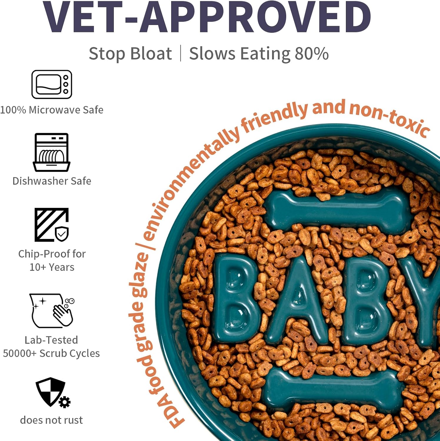 About this item Ceramic Material, More Suit For Your Dog:Veterinarians recommend using a Ceramic Slow Feeder Dog Bowl to keep your dog healthy and safe. Unlike plastic bowls that can cause skin irritation and "black jaws," our Ceramic Slow Feeder Dog Bowls are made of non-toxic, high-quality ceramic. This puzzle Dog Food Dish is microwave-safe, making it easy to warm meals at home or while traveling. It’s the perfect Pet Slow Feeder for all breeds, including Ceramic Slow Feeder Dog Bowls Small Breed, ensuring a safer and cleaner dining experience anywhere. Premium Ceramic, Prevent Your Dog From Eating Plastic:Plastic Slow Feeder Dog Bowls can break into dangerous pieces if chewed, putting your pet at risk. Our Ceramic Slow Feeder Dog Bowl offers a strong, non-toxic alternative that resists biting and wear. Ideal for use indoors, outdoors, or on the go, this Slow Feeder ensures safe and enjoyable meals. It’s a reliable Fun Feeder Slo Bowl that stands up to active chewers and multi-pet households. Easy To Clean, Save More Time:Cleaning this puzzle Dog Food Dish is simple and fast! The smooth ceramic surface and moderate maze width prevent food from sticking, unlike many Slow Feeder Dog Bowls. These Ceramic Slow Feeder Dog Bowls are dishwasher-safe and easy to hand wash, whether you’re at home, at a vacation rental, or on a road trip. Spend less time scrubbing and more time having fun—this Slow Feeder Dog Bowl helps keep life easy and mess-free. Heavy-Duty & Stable: Naturally Secure for Mess-Free Meals:With its low-profile, weighted design (approx. 1kg), this Ceramic Slow Feeder Dog Bowl resists tipping and sliding on tile, wood, carpet, patios, or even during travel. No extra mats or pads are needed. It’s a great Puzzle Dog Food Dish for multi-dog homes and energetic eaters. The scratch-resistant ceramic base won’t damage floors, and its stylish look fits any décor. A truly versatile Pet Slow Feeder for every scenario. Slow Down Eating, Bring Dog A Healthy Diet:Does your dog eat too fast? Our Slow Feeder Dog Bowls use unique ridges and maze patterns to extend meal times by up to 10x, reducing bloating and obesity risks. This Ceramic Slow Feeder Dog Bowl turns mealtime into a fun challenge—perfect for use at home, in crates, or outdoors. Suitable for Ceramic Slow Feeder Dog Bowls Small Breed and larger dogs, this Fun Feeder Slo Bowl supports healthier eating habits anywhere. › See more product details