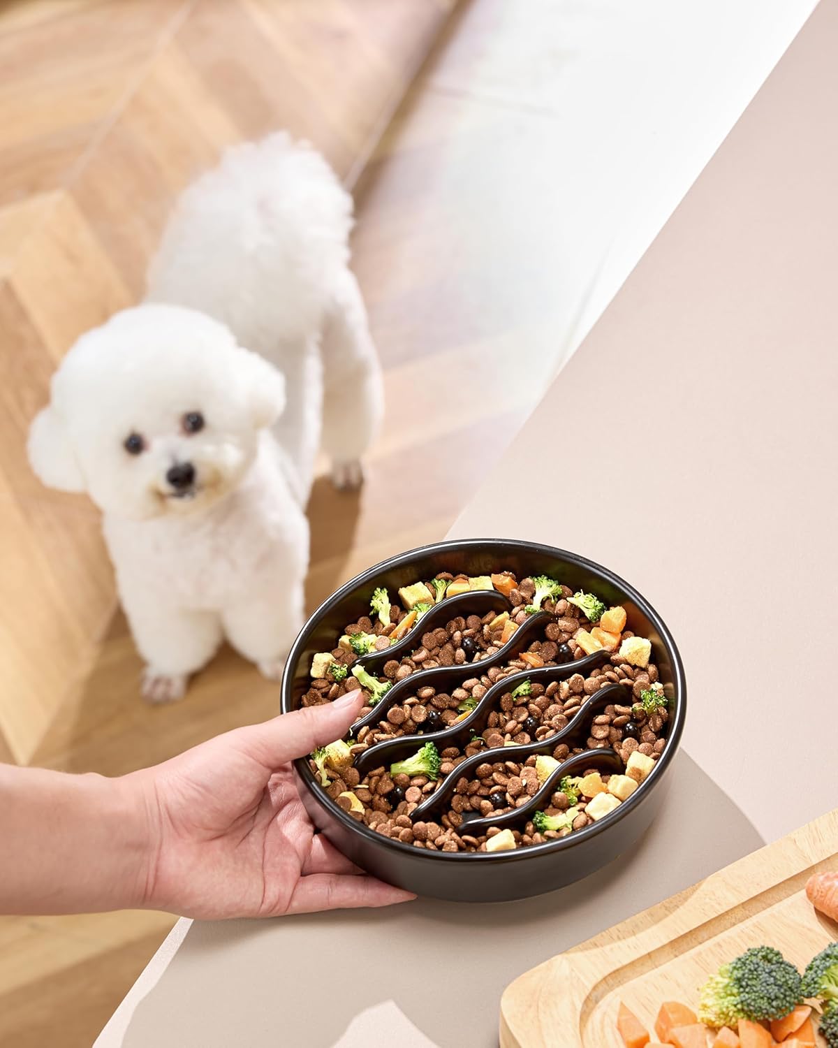 About this item 【Safe & Caring】 – MOPANG slow feeder dog bowls are crafted from non-toxic, stable ceramic, giving your pup a safe and loving mealtime companion. 【Joyful Eating】 – The gentle maze design of our dog slow feeder adds a touch of play, turning every meal into a moment of fun and curiosity. 【Slow Eating】 – Choose MOPANG slow feeder dog bowls to slow down fast eaters, support healthy digestion, and keep your dog happy. 【Easy for You, Fresh for Them】 – Smooth ceramic of our dog slow feeder makes cleaning simple, so every meal feels fresh and cared for. 【Steady Comfort】 – With a non-slip stand, the slow feeder dog bowls stay secure, letting your furry friend enjoy meals with ease and peace. › See more product details