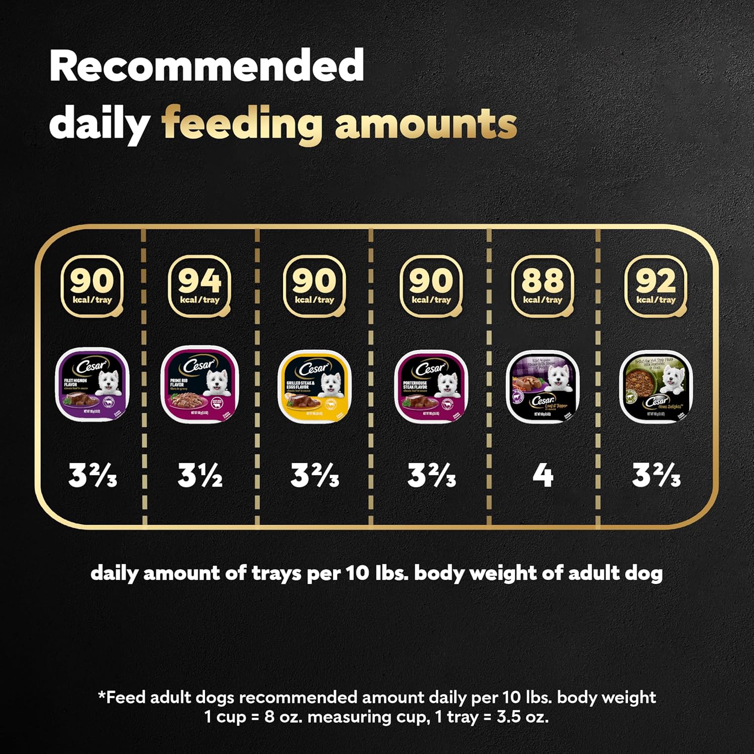 - Included Components: CESAR Steak Lover's Adult Wet Dog Food Variety Pack Trays 3.5 Ounces (Pack of 36)