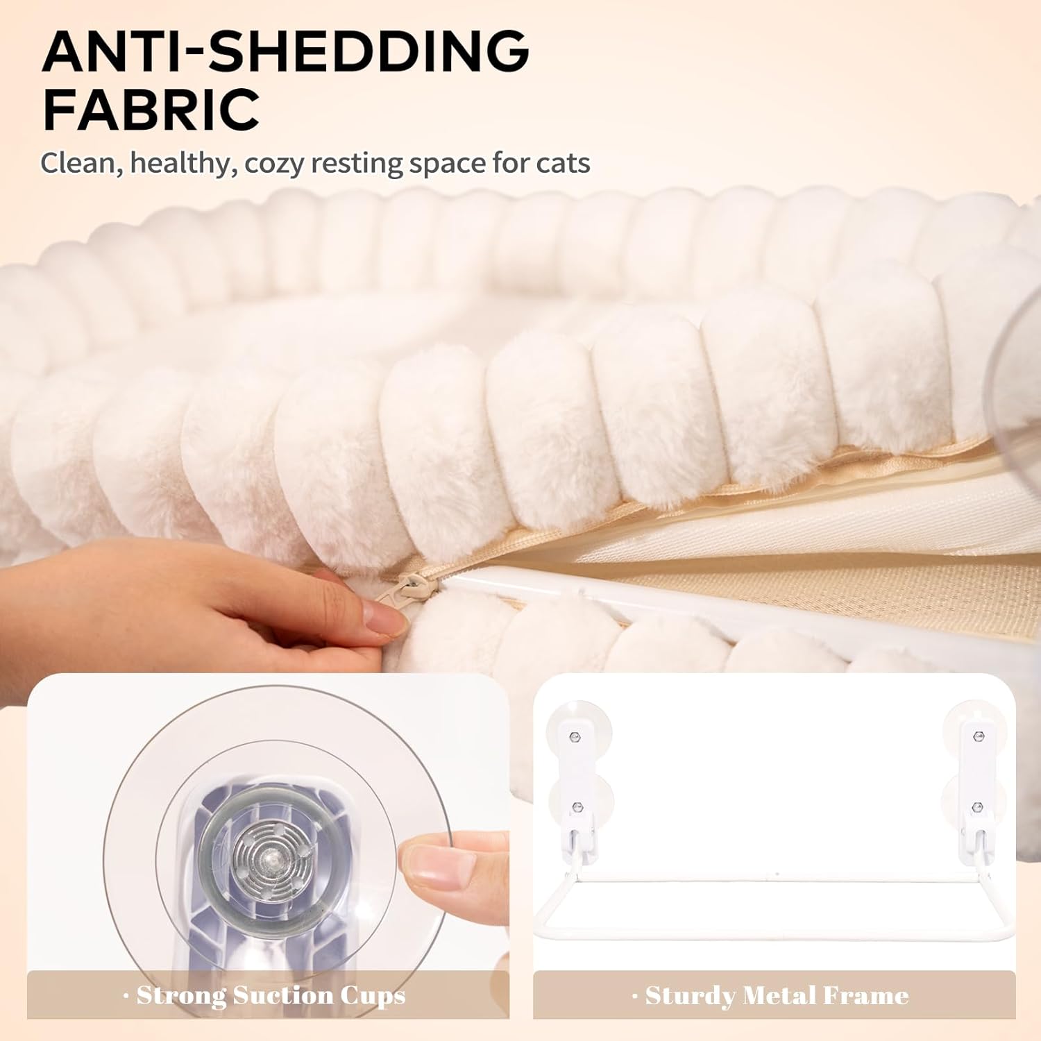 About this item Important Note Before Purchase: Suction cups may harden due to cold weather, which can reduce their suction power. We recommend soaking them in warm water (approximately 140°F) for about 10 minutes before use, then drying the suction cups and the window surface thoroughly. Reversible Cushion: This window cat hammock is suitable for all seasons. One side is made of plush fabric, which provides a warm resting spot for your cat in winter; the other side features breathable mesh, allowing your cat to enjoy a comfortable nap even in summer. It’s a year-round cozy haven for kitty. Healthy Comfort: Raised bed sides work like soft, built-in pillows—giving great support to your cat’s neck and head. So they can curl up cozy and stretch their head to watch the world outside the window. Sturdy & Stable: Supports up to 40 lbs—even when your cat jumps and plays, there’s no risk of falling. Fits cats of all breeds and sizes.(For stronger suction, gently wipe the suction cups with a damp wipe before use) Easy to Clean: Simply remove the cushion and place both it and the cat bed into the washing machine. To maintain its softness, avoid high-heat drying — this helps prevent the plush from becoming dry or brittle. Easy Storage: Cordless cat window perch folds completely upward to a 90° angle—effortless to store, saving more vertical space. Even when curtains are drawn, it won’t look bulky or overly protruding. › See more product details