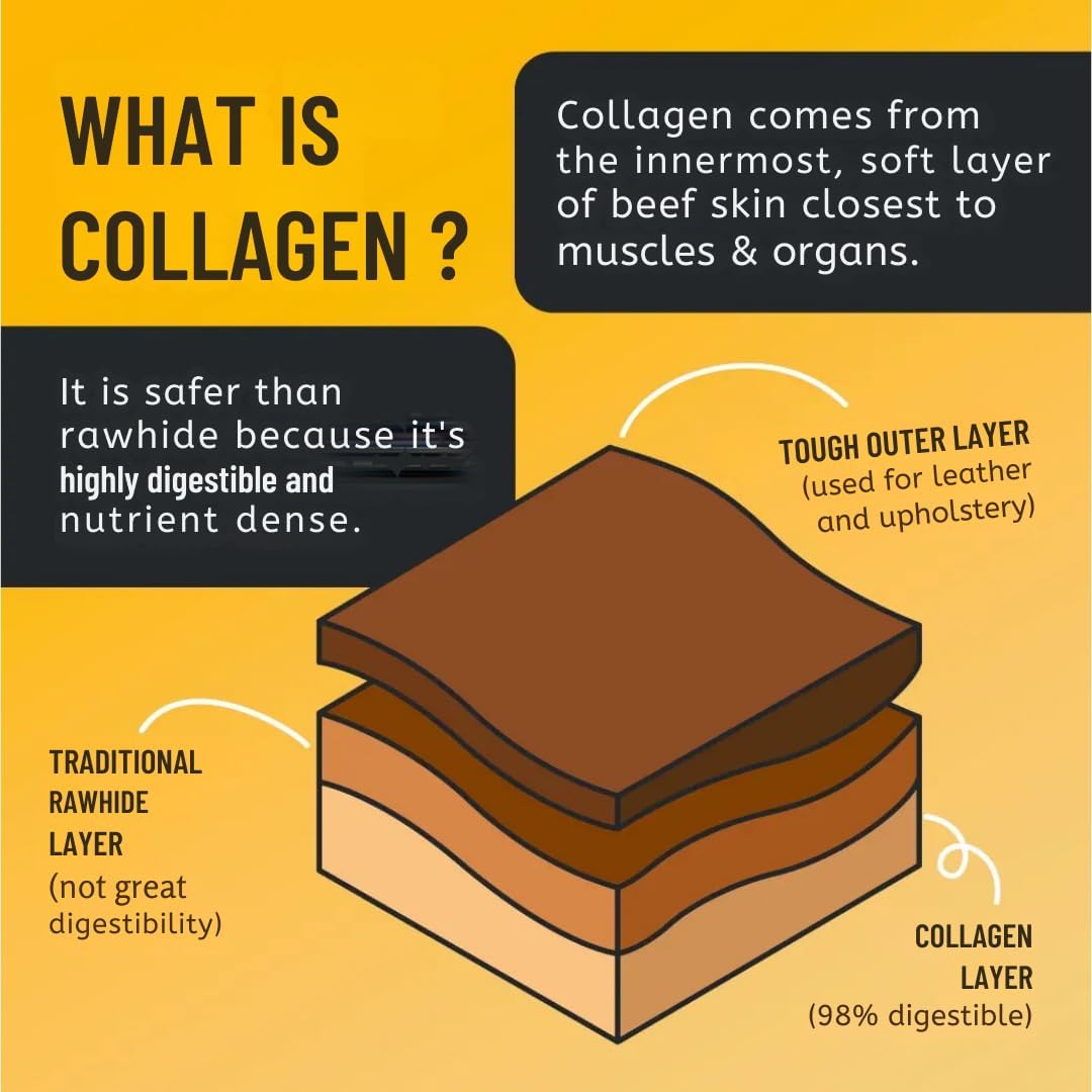 Chew-e&Tasty Collagen Sticks are not only nutritious but also irresistibly delicious. Free from artificial additives, they're a safe and natural choice for your pet. Elevate your dog's well-being with a daily treat that's as enjoyable as it is beneficial. Chew-e&Tasty Collagen Sticks are a game-changer for your dog's health. These delectable treats are packed with high-quality collagen, offering comprehensive benefits like joint support, skin and coat enhancement, and improved digestion. Suitable for dogs of all breeds and ages, these braided sticks are a convenient way to give your furry friend a daily boost of vitality.