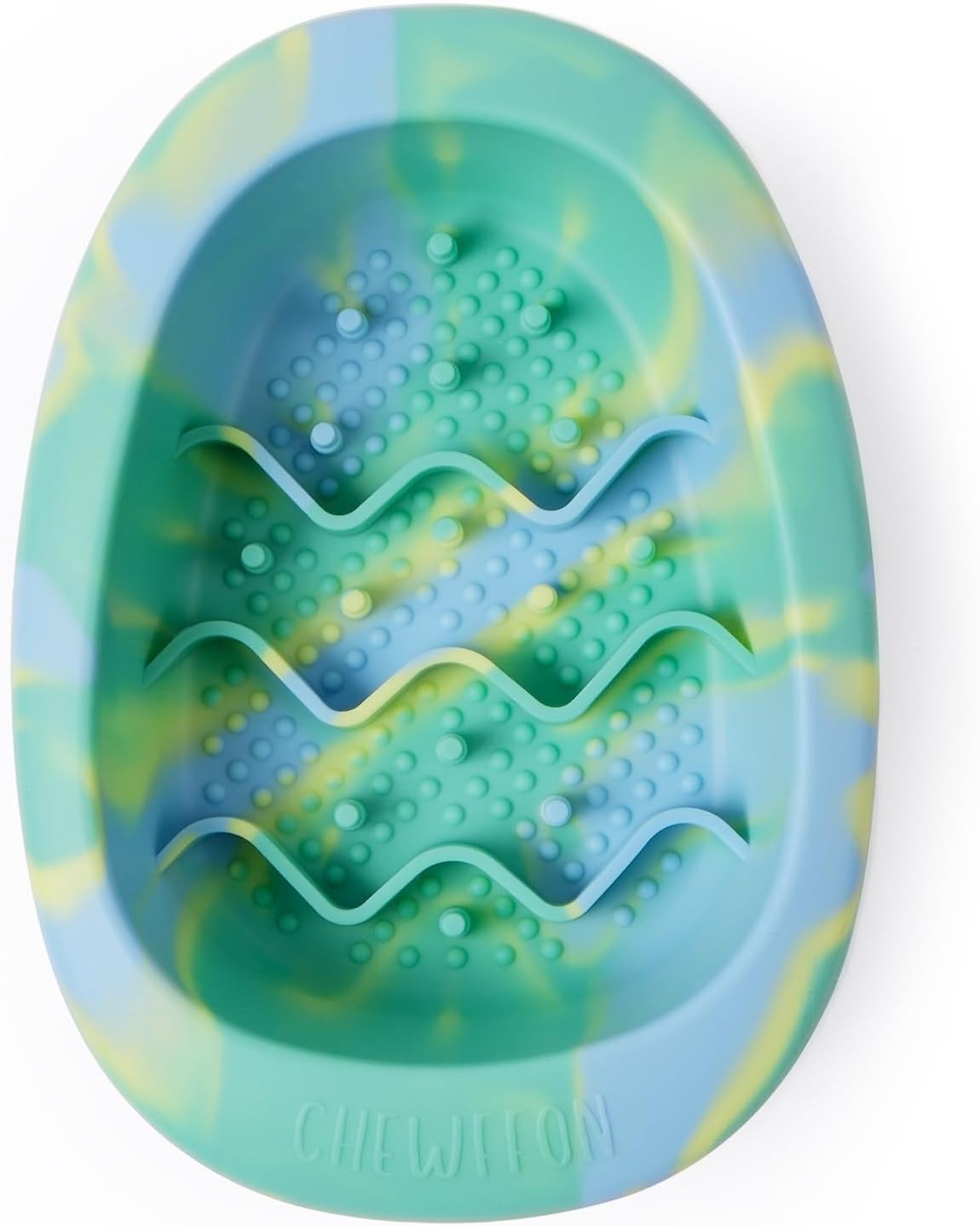 About this item Premium Food-Grade Silicone: Our slow feeder is made of 100% food-grade silicone, ensuring it's safe, non-toxic, and environmentally friendly. It's more durable than traditional pet bowls and can withstand chewing. Plus, it's microwave and refrigerator safe Promotes Healthy Eating: The CHEWFFON slow feeder features a unique design with massage dots that separate food, extending mealtime and promoting healthier digestion. These help prevent gulping and potential choking hazards, making mealtime more enjoyable for your pet Non-Slip Suction Cup Design: Strong suction cups on the base keep the bowl securely in place, preventing spills and messes, even for the most enthusiastic eaters Perfect for Small to Medium-Sized Breeds: Measuring 5.8 inches long, 4 inches wide, and 1.5 inches high, our bowl holds up to 1 cups of dry food. It accommodates various types of food and is ideal for small to medium-sized dogs and cats Easy to Clean: Our flexible silicone bowl is a breeze to clean. Simply rinse it with water or toss it in the dishwasher. Food residue washes off easily, whether it's dry or wet, ensuring your pet enjoys a clean and hygienic meal every time › See more product details