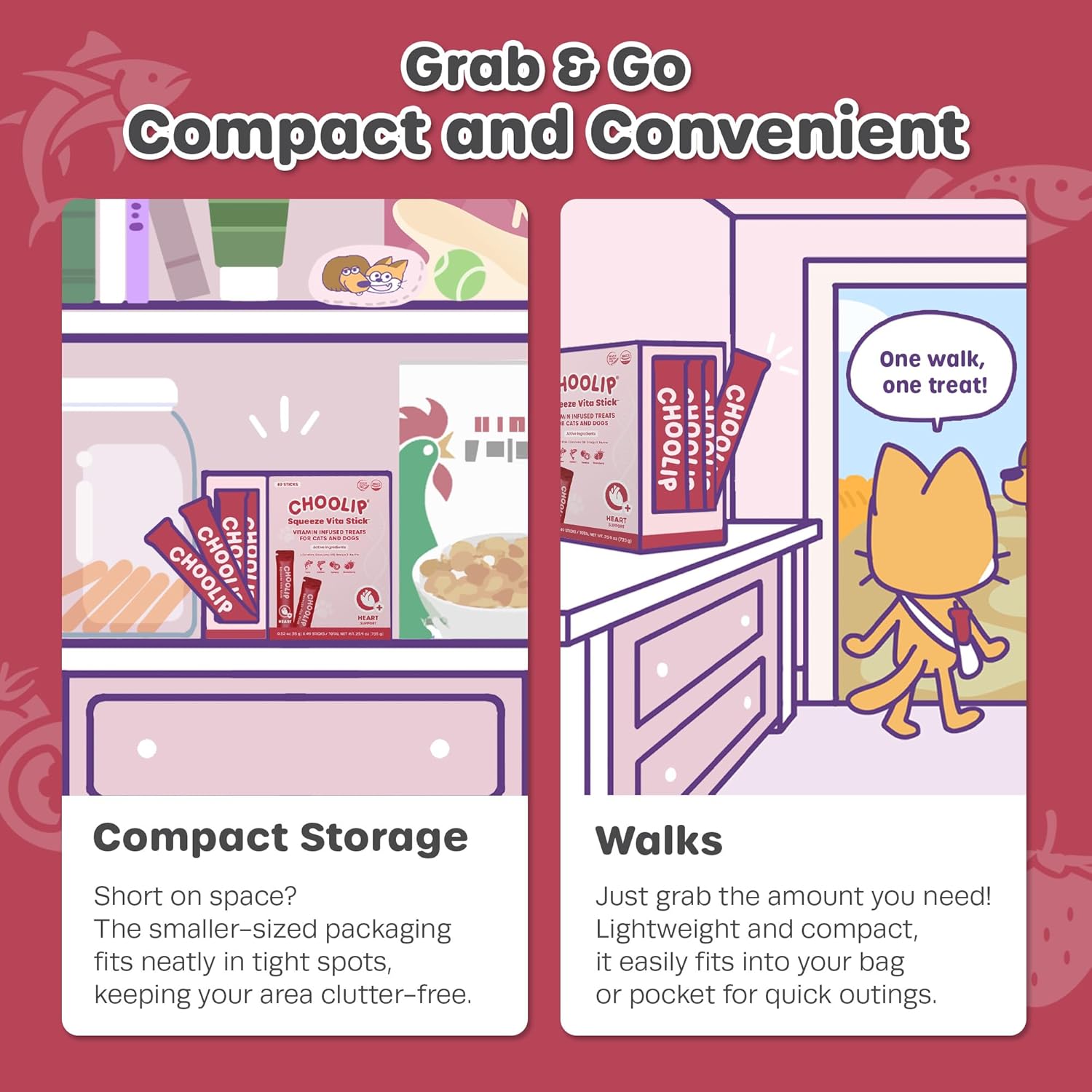 • JUMBO VETERINARIAN-FORMULATED FUNCTIONAL TREATS Developed by a Korean vet for his own pets, each Jumbo Squeeze Vita Stick is packed with creamy, nutrient-rich puree fortified with multivitamins and postbiotics. Now in a 40g jumbo size, it’s made for dogs and cats who crave more with every lick.