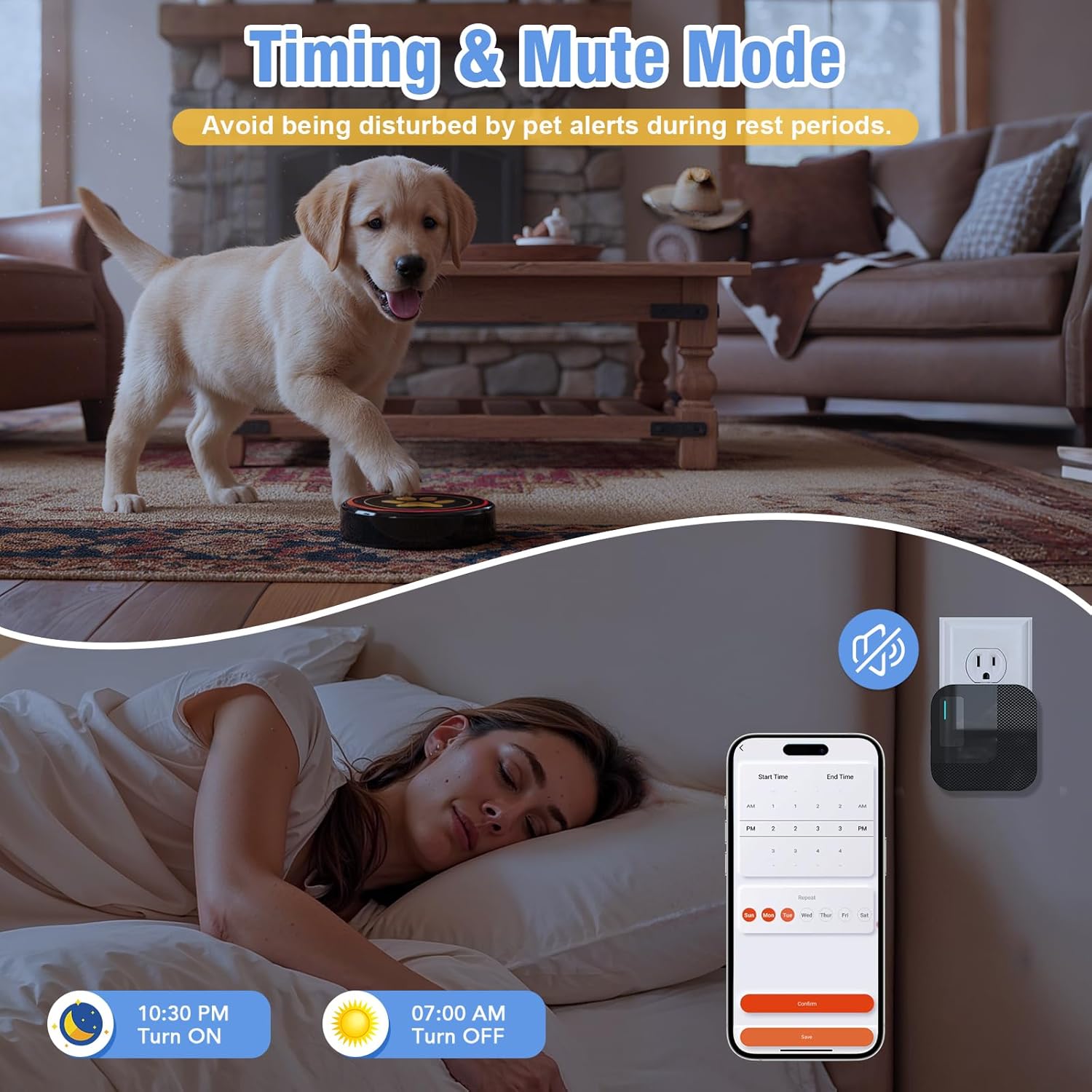 【Smart Remote Alerts】 This WiFi smart dog door bell connects to your mobile app and sends instant notifications, so you always know when your dog needs to go out—whether you’re in the living room, at work, or away from home. Perfect for dog potty training, supports 2.4GHz WiFi only (not compatible with 5GHz). 【Multi-User Sharing】 Share device notifications with family members so everyone stays updated on your dog’s activity. Once the main device connects to WiFi, others can join through the “shared device” feature. No matter where you are, the app sends real-time alerts right to your phone when your pup uses the bell for dogs to ring to go potty. 【Touch to Ring & Long Range】 No hard pressing needed—your dog can ring the dog training bell with just a gentle nose or paw touch. The stable connection works both indoors and outdoors, covering up to 500 ft, ideal for puppy potty training and dogs of all sizes and ages. 【Waterproof & Easy Setup】 Built with an IP55 waterproof and dustproof design to handle outdoor weather and slobber. Installs in seconds—no tools required. Use the included adhesive tape to mount the dog bell for door potty training near your door, on the wall, or on the floor. 【Dual Notification Options】 Receive free in-app alerts with no subscription required, or upgrade to optional paid SMS and phone call notifications. Even without internet access, the receiver’s sound will alert you to your dog’s activity, so you’ll never miss a potty signal with this smart bell for dog training to go outside. › See more product details