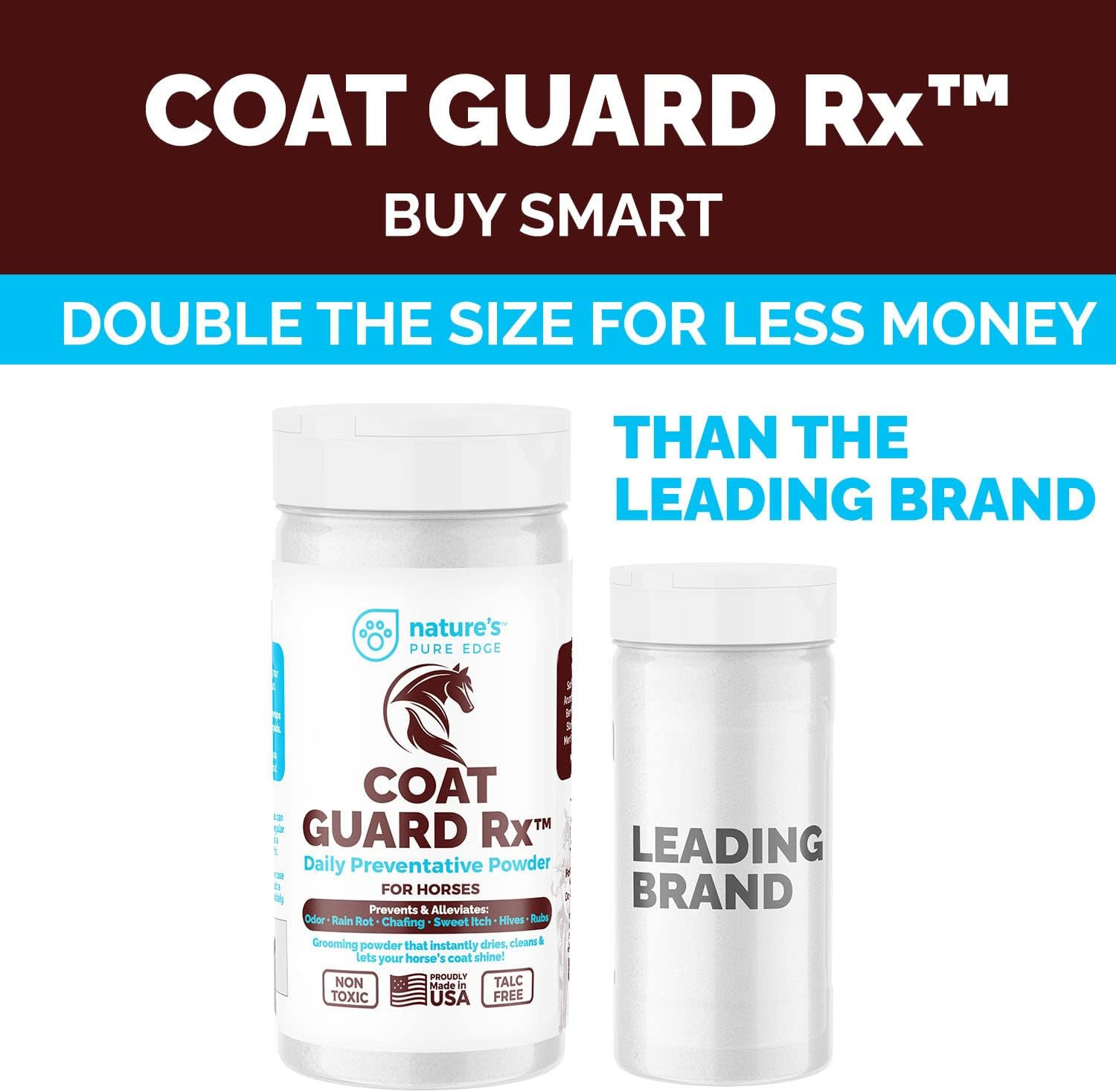 About this item Large 16 oz jar of rapid itch relief for your horse: Formulated with Aloe Vera to help soothe skin providing relief from inflammation caused by allergens, hives, and bites. Cleans and deodorizes your horse’s coat, mane, and tail without harsh chemicals. Most economical treatment and defense against: sweet itch, bites, scratches, rain rot, tail rubbing, and skin funk. An essential part of a robust winter horse care routine. No better product or value available, guaranteed! Best wound care for horses: Softens injured skin while absorbing excessive moisture to help repair painful and itchy crusting. Protects against further damage and creates a barrier to further skin and coat damage. Perfect waterless shampoo for horses: Dries up sweat and keeps your horse’s coat looking and smelling clean. Safely works to eliminate and prevent further harm and odor to your horse’s skin. Natural and safe: Non-toxic ingredients. Use Coat Guard Rx in boots, under saddle blankets and pads to keep your horse dry and smelling clean. Use regularly to prevent chafing and rubs anywhere tack, blankets, or other equipment comes in contact with your horse’s coat. Completely safe to apply by hand. Can be reapplied if horse licks the powder. Made with care by a US company! › See more product details