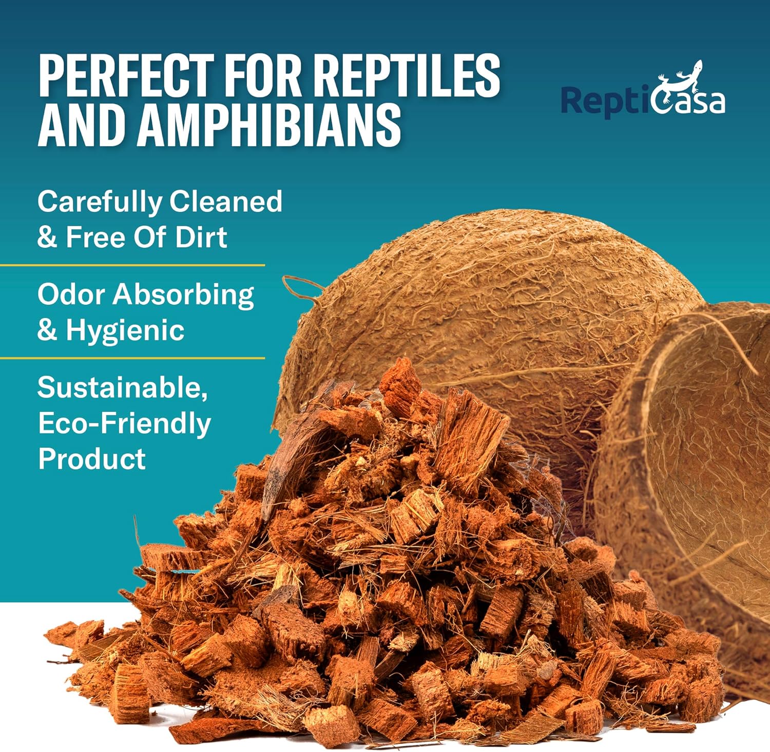 About this item Organic Coconut Husk Chips – Ideal bedding and breeding use for reptiles and amphibians, our Coconut Chips is all-natural and organic to also support other common pets like geckos, tortoises, turtles, boas, pythons, lizards, and snakes. Optimal Coverage Area – This premium reptile substrate features larger mixed husk sizes to fully cover up to 75 quarts of tank or terrarium space without requiring large expansion to provide more value and to better support your animals. Odor-Absorbing and Hygienic – A smarter choice for enclosures inside your home or shared spaces our Coconut Chips for snakes and other pets help lock in odors caused by feces, urine, stale water, or other naturally excreted liquids. Helps Maintain Proper Humidity – ReptiCasa coconut husk substrate also helps you keep your terrarium at a more balanced humidity level to keep your pet more comfortably when they’re sleeping, moving around, or breeding. Trusted Purity and Quality Assurance – Here at ReptiCasa we ensure our Coconut Chips Expandable Substrate is free of dirt, fibers, or other impurities prior to shipping, so it better suits your pets needs and is safer for their long-term health and wellness. › See more product details
