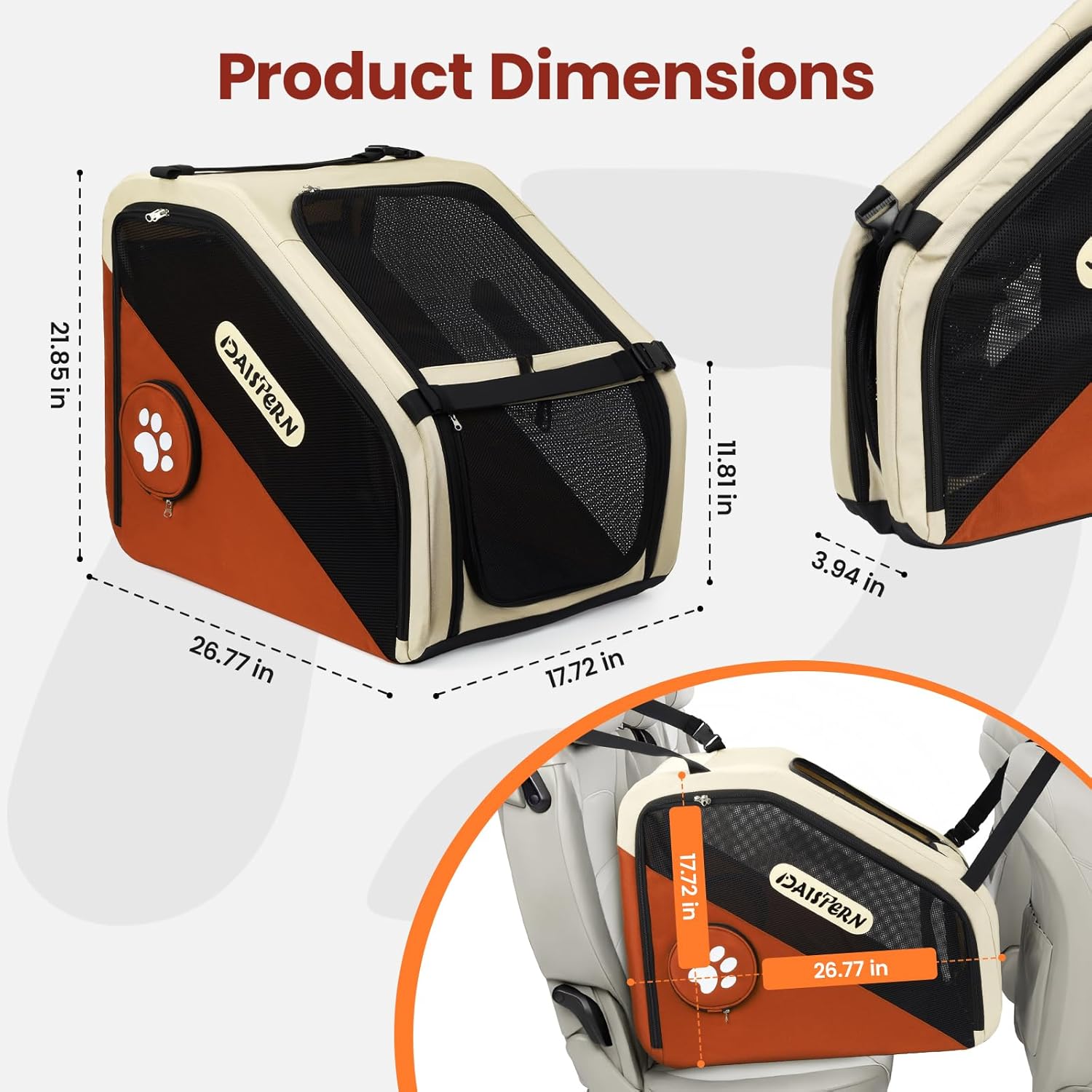 - Included Components: 1 x DAISTERN Portable Pet Crate for Car Brown