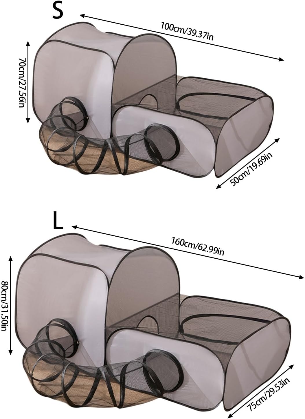 Convertible Cats Playpen Expandable Tunnel Safe Lounging Playpen for Indoor Outdoor Activity Game Tent for CampingFeatures:This multiuse cats tunnel house with expandable play tunnel converts into outdoor cats tent, offering multiuse for adventure and relaxation while ensuring sun protections and better ventilation.Use scratch polyester and breathable, the foldable design features stable frame for stability, easy storage, and comfortable airflows during extended outdoor use.Great for pet owners seaching secure indoor outdoor enrichment space for cats who enjoy supervised exploration or sunbathing in controlled Perfect for park visits, backyard lounging, or car travels, providing a shaded retreat and play zone that suited to your cats natural curiosity.The foldable configuration and pet safe materials create a stress freely sanctuaries, blending portability with longlasting for daily adventure or indoor sleep.Specifications:Component: PolyesterProduct Size: Approx. 01 size 100x50x70cm/39.37x19.69x27.56inch, 02 size 160x75x80cm/63x29.53x31.5inchSize: 01/02Package Includes:1PC cats Tunnel HouseNote:Please allow 1-2cm error due to manual measurement.Due to the differences between different monitors, the picture may not reflect the actual color the item.