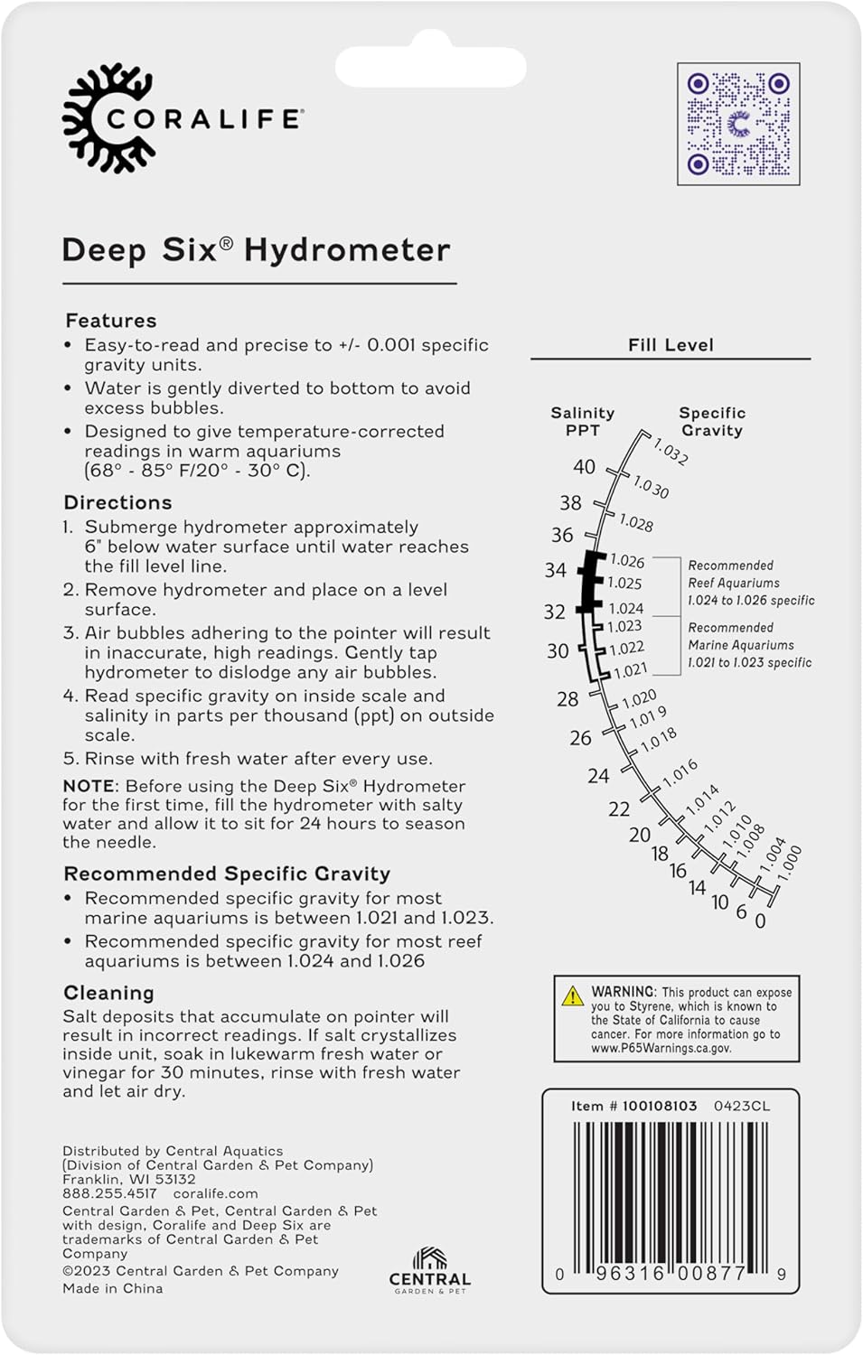 - Included Components: Coralife Aquarium Fish Tank Deep Six Hydrometer For Measuring Water Salinity PPT and Specific Gravity