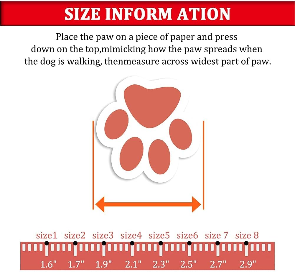 About this item Size 3: (2.5''x1.9'')(L*W) for 23-33 lbs. Please refer to the picture size chart,You can choose the right size for your dog for the most comfortable fit. FASHIONABLE: dog boots are with cute pet paw embroidery, paws side is the outside, soft and hand washable. QUALITY: The dog boots have a rugged sole and high quality fabrics that are then sewn together to ensure they are ready for your adventure. SECURE and ADJUSTABLE: Easy to put on / off. These dog shoes expands with a wide split seam opening and two adjustable and reflective straps to ensure a tight fit, also make your dog safe at night. Friendly Customer Service:Our size is based on the inner diameter of the shoe and is measured by hand, Please allow a little size error. You are welcomed to contact us with any questions about the products and services at any time. We will respond within 24 hours, you can purchase with confidence. › See more product details