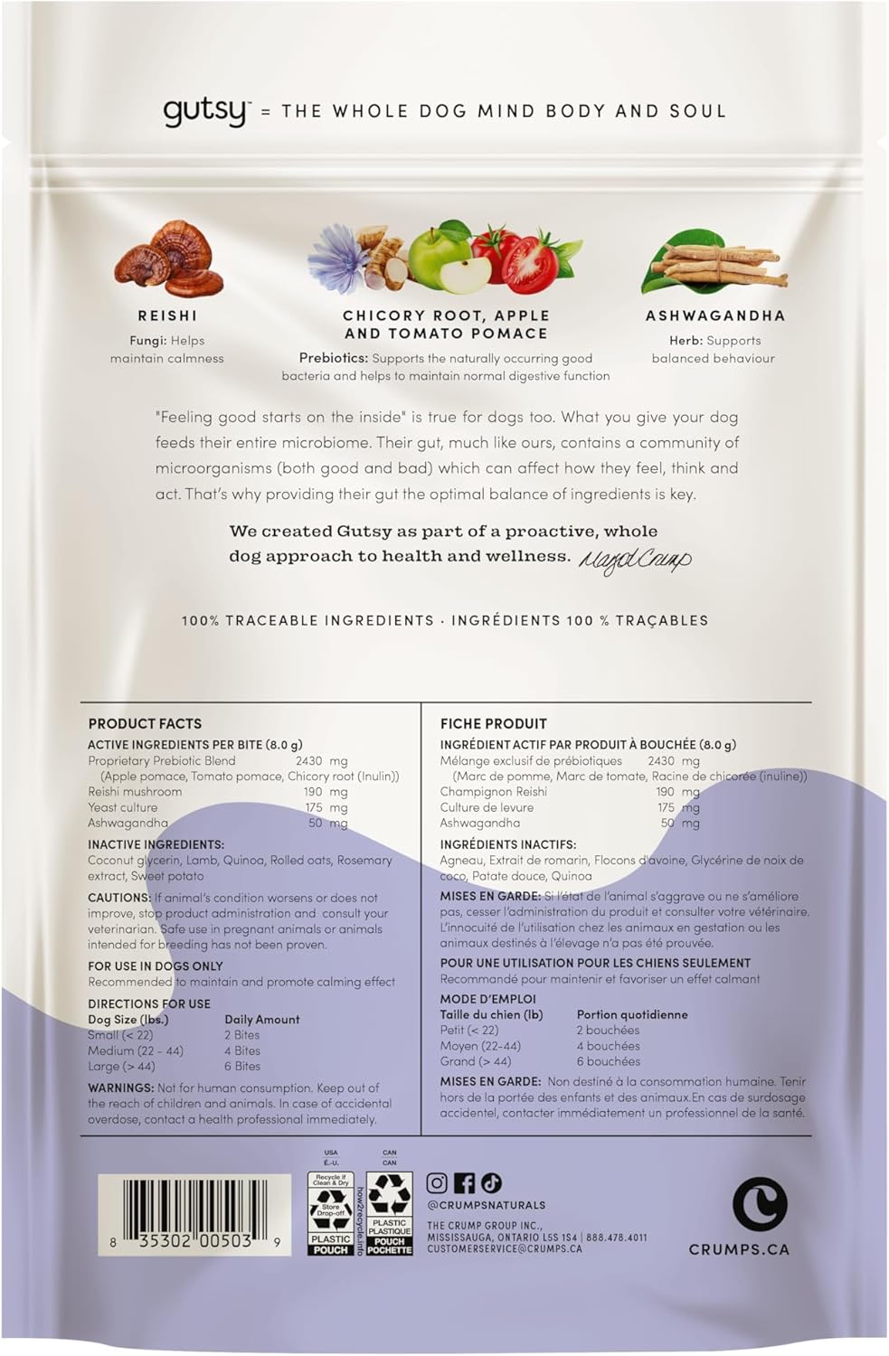 Crumps' Naturals Gutsy Calm Bites are designed to provide dogs with both digestive support and a sense of calm, using natural ingredients like chamomile and ginger known for their calming properties. These bites are ideal for moments of stress, offering a comforting treat that can help soothe your pup in new or challenging situations. The added prebiotics support gut health, making this a perfect snack for dogs with sensitive digestion. With a crunchy texture that aids dental health, these bites are as beneficial as they are enjoyable. Available in convenient 130g and 284g resealable bags, they’re easy to store and carry, ensuring that a calming treat is always on hand when needed.