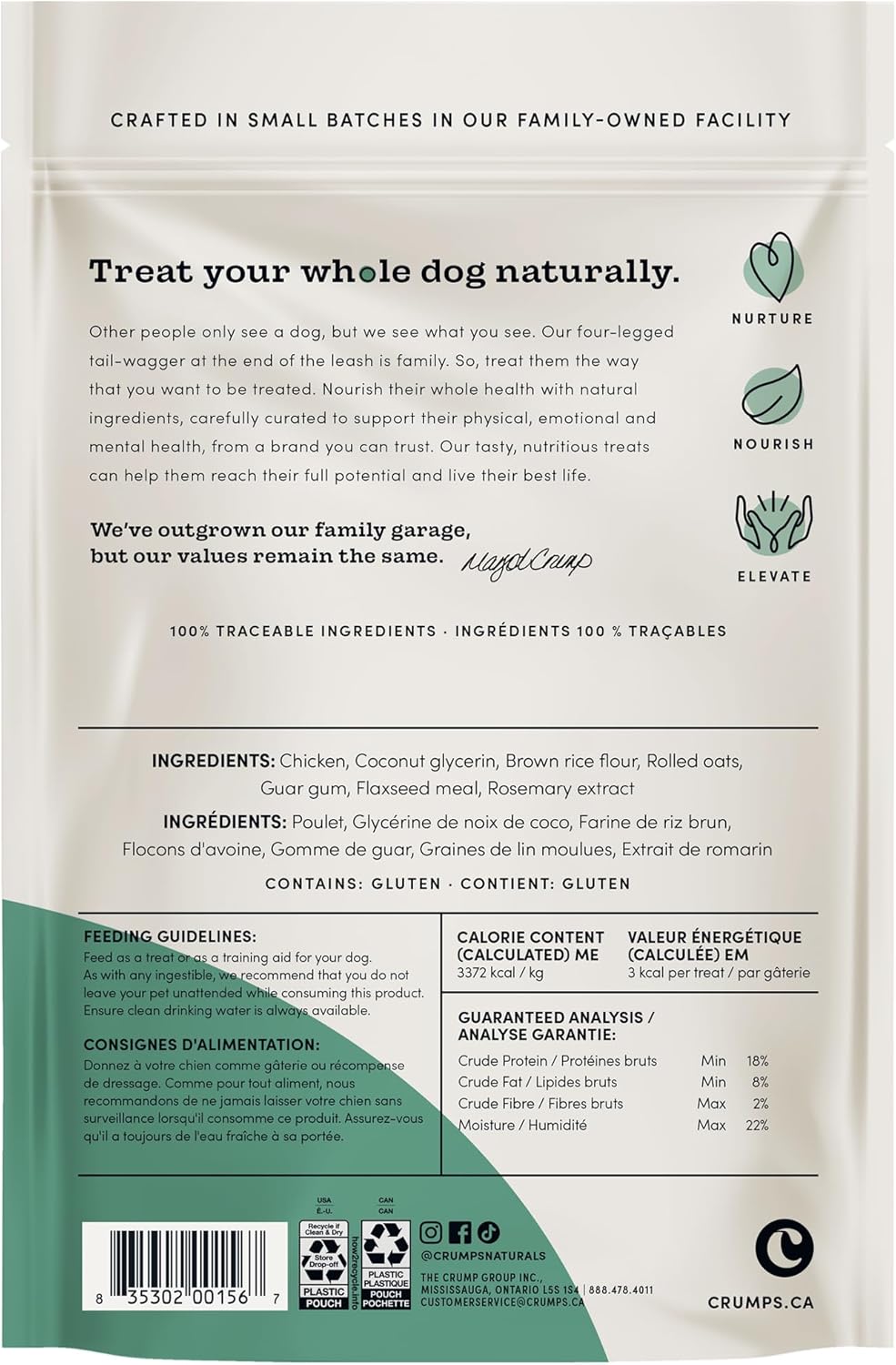 - Included Components: Crumps' Naturals Semi-Moist Chicken Mini Trainers, 4.2oz / 120g