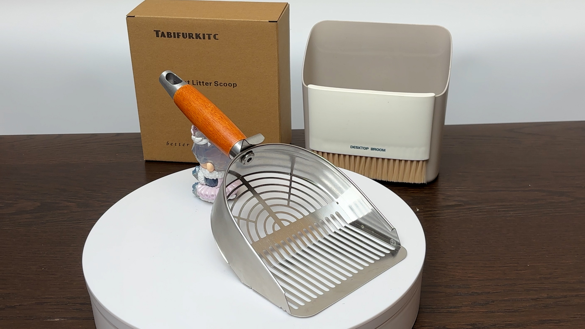 This upgraded cat litter scoop / litter scooper from TabifurKitc is designed for mineral clumping litter, tofu litter, and crystal litter. Featuring dual sifting sizes—4mm fine holes for small particles and wider slots for larger clumps—this fast sifting cat litter scoop efficiently removes crumbled litter with its front section while the back handles heavy-duty clumps with ease. The smooth laser-cut edges reduce burrs, and the surrounding structure prevents spillage, keeping your litter box and home clean. Note: For biodegradable litter, gently shake for best results. This set includes a stainless steel cat litter scoop with holder, portable broom, dustpan, and adhesive hook for organized storage. The holder doubles as a litter collector, making disposal mess-free. The broom allows quick cleanup of scattered litter or pet food, eliminating the need for a vacuum. This premium cat litter tool set saves time and effort for busy pet parents. This metal cat litter scoop with stand features laser cutting for smooth edges, 40% thicker sidewalls, reinforced welds, and a solid oak handle secured with screws. The screw-fastened handle design helps prevent breakage over time. If the handle feels slightly loose initially, simply tighten the screws once for a secure fit. Stronger, safer, and longer-lasting than ordinary scoops, this durable cat litter scoop easily handles heavy-duty clumps. This cat litter scoop with hook and holder keeps your cleaning tools tidy and within reach. Mount it on the wall or hang it on the litter box to save space. Its space-saving design ensures your cleaning area stays organized, compact, and easy to use. Effortlessly Removes Stuck Litter] The smooth-edged front, crafted with laser cutting, scrapes off stuck litter from the box bottom with ease. Its fine sifter works best with clumping litter, mineral litter, tofu litter, and crystal litter, making it easy to handle large clumps, poop, and everyday messes. This upgraded cat litter scoop / litter scooper ensures a thorough clean every time. › See more product details
