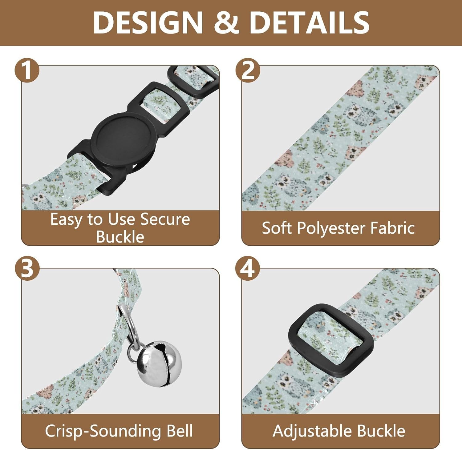 About Our Pet Collar: Suitable for Cats & Small Dogs Designed for cats and small dog, this pet collar works well for daily wear, indoor activities, and outdoor walks. Materials -- Made from polyester webbing that feels smooth on the skin and maintains a neat appearance. -- Double-sided printed design stays flexible and comfortable without causing rubbing. -- Includes an adjustable buckle and a metal bell for added functionality. Adjustable Fit -- Adjustable dog collar fits neck sizes from 10.6 to 17.1 inches. -- Easy-to-use buckle allows quick size changes as pets grow. -- Stays properly positioned during movement and play. Bell Design -- Built-in metal bell produces a soft sound for easy pet tracking indoors. -- Adds a decorative touch while supporting daily use as a cat collar or dog collar. Package Included -- 2 × Pet Collars -- Width: 0.6 in each -- Suitable for rotation, cleaning, or multi-pet households. HN005Care Instructions -- Hand wash recommended