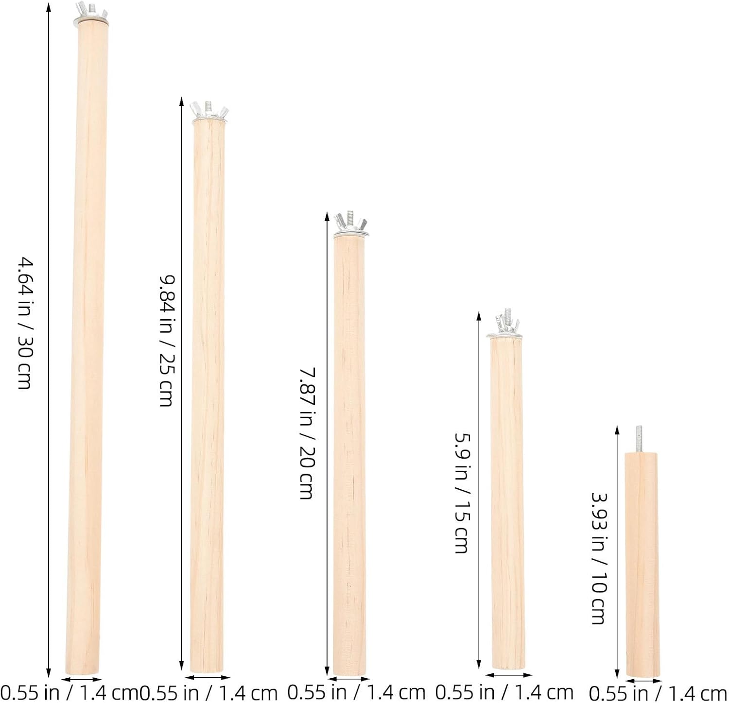 DescriptionEnhance your bird's cage environment with this set of 5 wooden parrot perches Crafted from durable wood, these bird cage accessories are designed to provide and comfortable space for your parrot, parakeet, cockatiel, or lovebird to stand, rest, and play The natural wood material ensures a smooth surface without burrs, making it gentle on your bird's feet while promoting healthy activity and balanceEach perch is equipped with bolts and for secure and installation The double washer design ensures stability, keeping the perch firmly in place even during active play With five different lengths (3.93, 5.89, 7.86, 9.82, and 11.79), these perches cater to various cage sizes and bird preferences, offering versatility and functionalityFeatures- Color: Khaki- Material: Wood- Sizes: - 30.00X1.40X1.40cm / 11.79X0.55X0.55in- 25.00X1.40X1.40cm / 9.82X0.55X0.55in- 20.00X1.40X1.40cm / 7.86X0.55X0.55in- 15.00X1.40X1.40cm / 5.89X0.55X0.55in- 10.00X1.40X1.40cm / 3.93X0.55X0.55inPackage Including1 Parrot Perch (10cm)1 Parrot Perch (15cm)1 Parrot Perch (20cm)1 Parrot Perch (25cm)1 Parrot Perch (30cm)