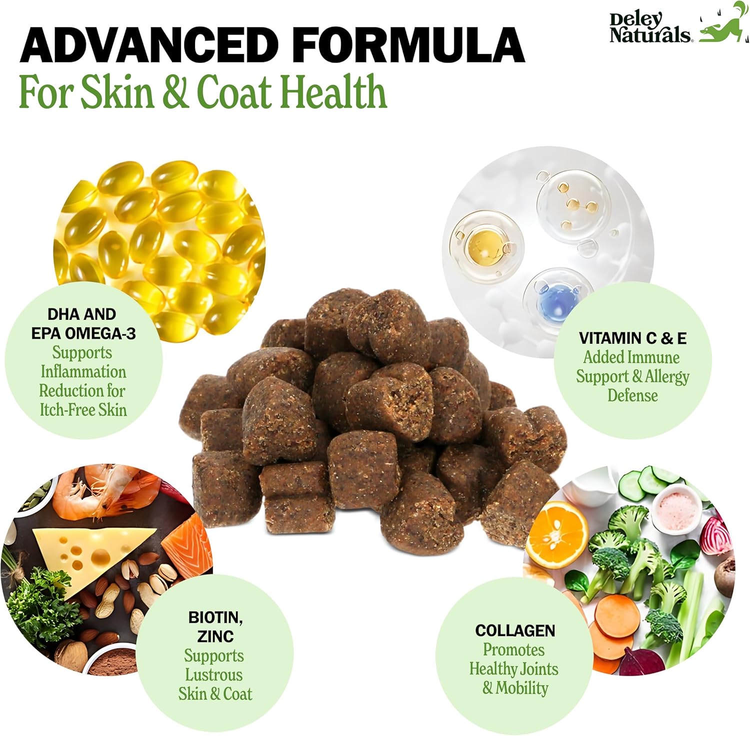 - Specific Uses for Product: These dog chews help support a healthy skin & coat, improved coat appearance, excess shedding, and itchiness for dogs with allergies. Helps your dog feel great and have a beautiful shiny coat.
