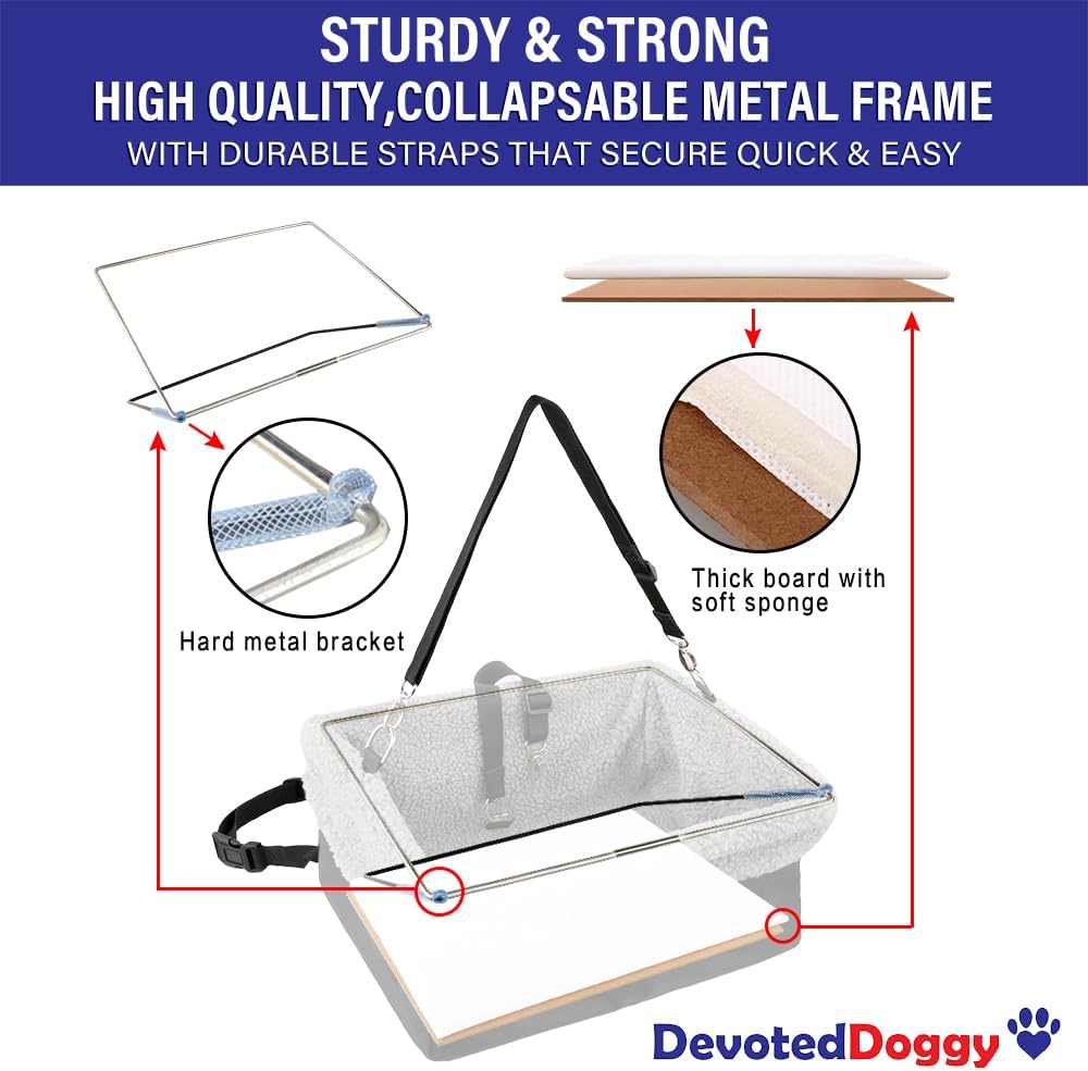 About this item Ensures safety during driving. The travel carrier cage has 2 adjustable straps to fix on the headrest and base of your front seat, which can prevent the movement of the dog seat during driving. The booster seat also has an adjustable leash to clip to a dog’s collar or harness. This ensures your beloved pup stays inside during your travel, giving you peace of mind while keeping your dog safe. Upgrade reinforcement and Comfort. Built with a high-quality collapsible metal frame, our seat will not collapse and is very sturdy once installed. Moreover, the seat is fully lined with extra-soft padding to provide great comfort. Easy to use and waterproof material. Installed in less than a minute, with adjustable straps fitting most cars. The collapsible design makes it easy to store when not used. The bottom black exterior is waterproof and the liner is machine washable. Elevated for a better view. The dog window seat can be boosted up for a better window view for your lovely puppy while driving and enhance the riding experience. Ideal Product Size. The dog travel crate is 16”*13”*8” in size for a cozy ride. The product fits small pets (like dogs or cats) up to 15lbs. › See more product details
