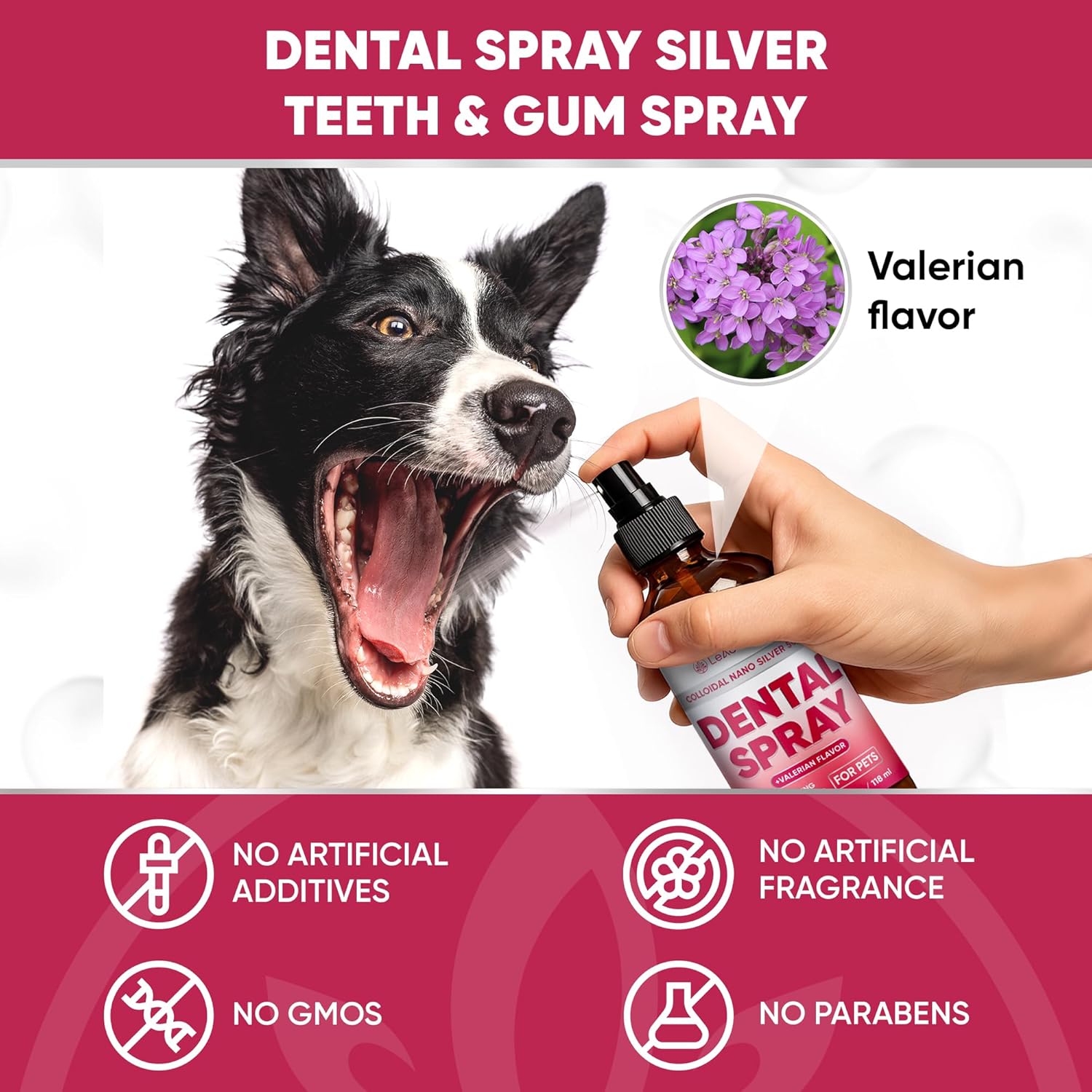 About this item CATS & DOGS TEETH CARE: Foul mouth odor, tartar, plaque, caries appearance, or gum changes? Meet our Dental Spray that helps with these unpleasant moments! Simply spray and find the result! CATS & DOGS TEETH CARE: Foul mouth odor, tartar, plaque, caries appearance, or gum changes? Meet our Dental Spray that helps with these unpleasant moments! Simply spray and find the result! SUITABLE FOR MANY ANIMALS: This dog dental care is Ideal for cats, dogs, rabbits, guinea pigs, horses, and more. Safe for pets of all ages in need of extra dental care and hygiene support. EASY WAYS TO USE: Apply this cat dental care directly into your pet’s mouth for quick freshness and teeth support, or spray onto a toothbrush for a gentle, thorough cleaning. CONVENIENT FORMAT: We provide this Dental Spray teeth care for dog, cat, and other pets in a convenient 4-oz bottle with a sprayer. Take a walk, or use it even while travelling! › See more product details