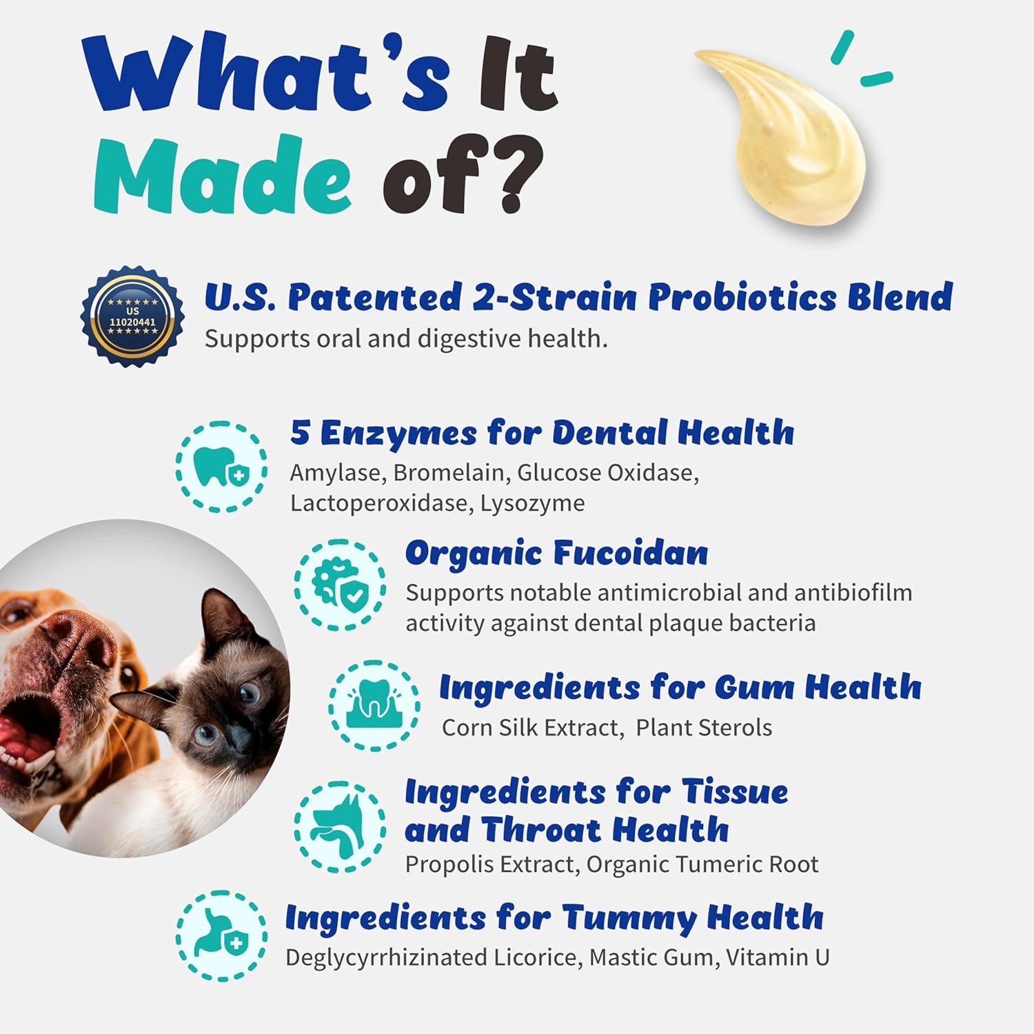 About this item 2 Patented Probiotics for Dental Health - Lactobacillus paracasei(LPc-G110), Lactobacillus delbrueckii subsp. Lactis(LL-G41). 5 Enzymes for Dental Health - Glucose Oxidase, Lactoperoxidase, Lysozyme, Amylase, Bromelain. Organic Fucoidan - Supports notable antimicrobial and antibiofilm activity against dental plaque bacteria and the digestive tract by maintaining the balance of good and bad bacteria. Ingredients for Gum Health - Corn Silk Extract, Plant Sterols. Ingredients for Tissue and Throat Health - Propolis Extract, Organic Tumeric Root. Ingredients for Tummy Health - Deglycyrrhizinated Licorice, Mastic Gum, Methylmethionine Sulfonium Chloride (Vitamin U) › See more product details