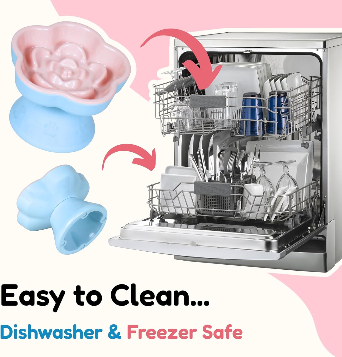 About this item 🌸 Effective Slow Feeding for Cats & Small Dogs: Specially designed for cats and small breed dogs, this slow feeder bowl features raised ridges and a maze-like layout that naturally slows down eating. The controlled pace helps reduce vomiting, prevents choking, and minimises bloating or digestive issues. Ideal for Dry or Wet Food, it's a must-have for pets who eat too fast. 🔧 Detachable & Adjustable Use – 2-in-1 Design Use it elevated or flat — the detachable pedestal lets you switch between a raised 4.2-inch tilted position or a flat feeding bowl in seconds. Ideal for cats of different ages and habits, providing flexibility and ergonomic support. 📐Tilted & Raised for Neck and Spine Relief Set at a 15° tilt, this elevated cat bowl reduces neck pressure and improves posture during mealtime. Especially helpful for senior cats or those prone to vomiting due to rapid eating. 🍽 Safe, Heavy & Dishwasher-Safe Melamine Bowl: Crafted from BPA-free, Food-Grade A5 Melamine, this chip-resistant raised slow feeder bowl is tougher than ceramic and more durable than plastic. Weighing 1.7 lbs, it’s a heavy pet bowl that stays put—ideal for playful cats and small dogs. The non-slip base with 4 anti-slip pads prevents sliding, while the smooth, glossy surface resists stains and odours. Entirely dishwasher safe, this easy to clean cat and dog slow feeder bowl is designed to be as functional as it is cute. 🎀 Whisker-Friendly, Cute & Functional The 5.8-inch shallow wide slow feeder cat bowl is whisker-friendly, preventing discomfort and food stress. Its pastel pink-and-blue flower design adds charm to any room while providing a spill-free, wobble-free feeding experience. › See more product details