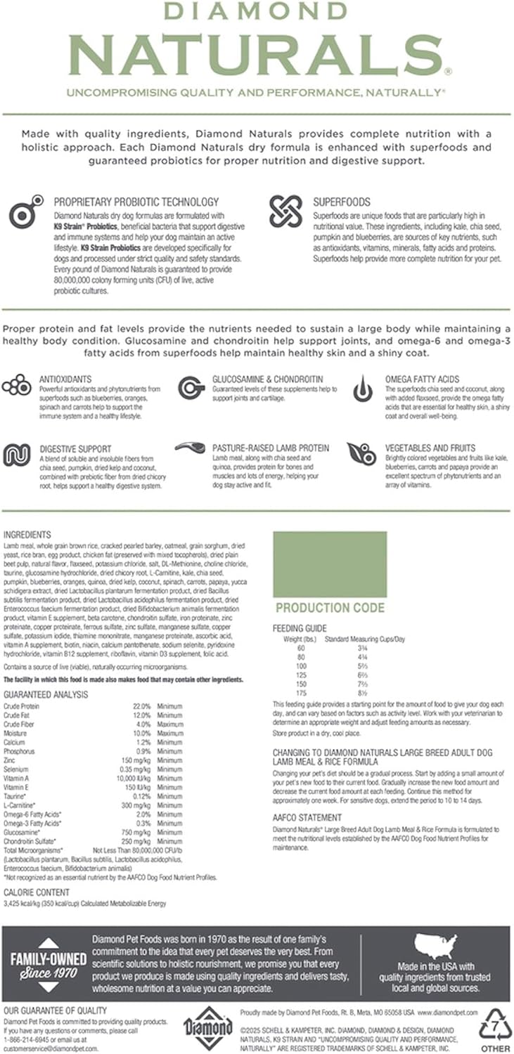 - Model Name: Large Breed Adult Dog Lamb Meal and Rice