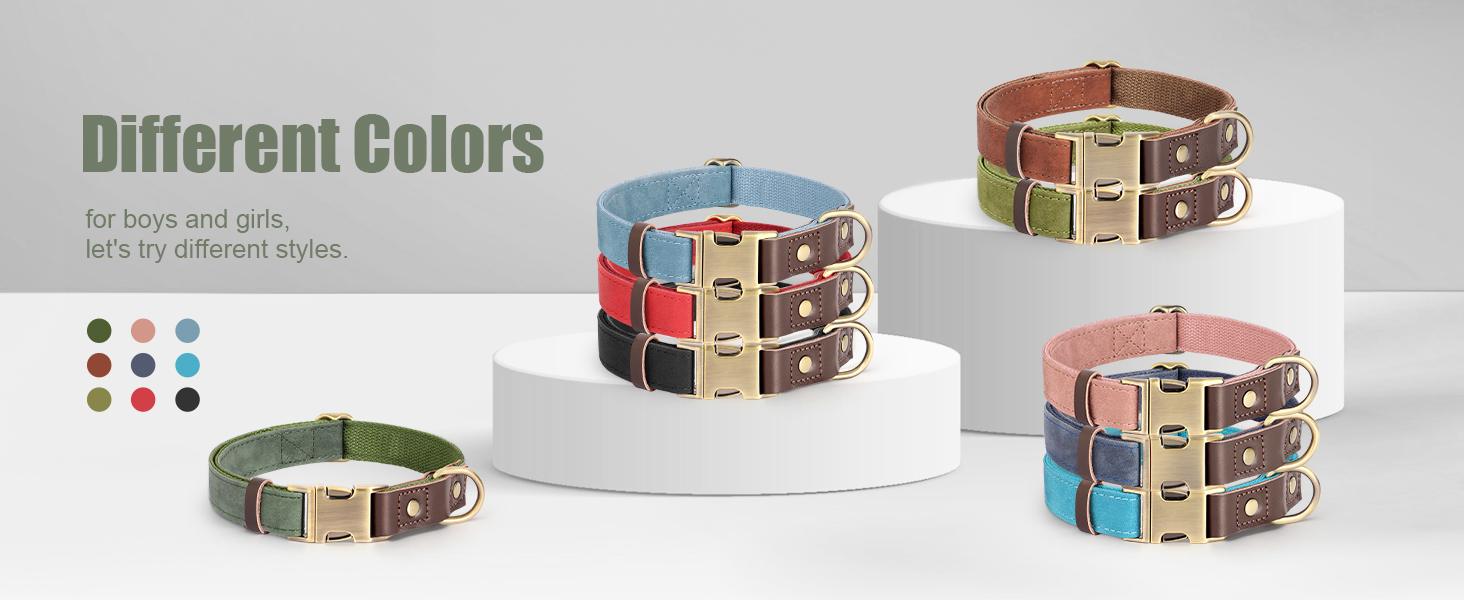 About this item Stylish and Classic: This green dog collar is available for many kinds of occasions, such as daily walking, birthday parties, running, jogging, traveling,Christmas or other activities. The wonderful color and unique material is both suitable for boys and girls, will let your pets be eye-catching,fashionable and modern Comfortable and Skin Friendly: Smooth nylon liner and soft PU exterior let this collar for dog is skin friendly and soft enough that won't hurt your dogs, also will make them feel cozy and free even wearing all day. This high quality dog collar is time-lasting for your use Quick-released Clasp: The vintage buckles make the whole dog collar more sturdy and classic. Quick released metal buckle is easier and faster to put on and take off. With a adjustment clasp, you can easily adjust the collar to a suitable and comfortable size Easy to Clean: With the PU leather and nylon material, it's very easy to clean, could use the wet cloth to wipe it. All accessories are metal, strong and rust proof enough for your lasting use. Also you could attach the leash to the D ring, convenient for you walking dog Medium Dog Collar -M size Fit 13-19" Neck, suitable for medium dogs(19-44lbs), just pls measure your dog neck size first and leave 2 figures, then refer to the size chart when purchase. We sincerely hope you could take the correct size collar home › See more product details