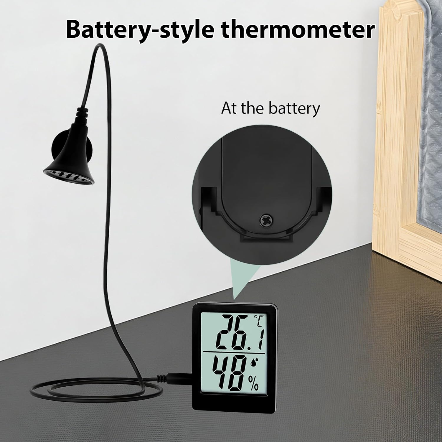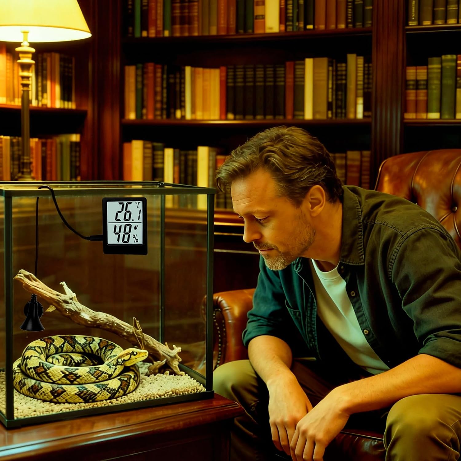 CREATE THE PERFECT HABITAT FOR YOUR SCALED FRIENDSReptiles and amphibians thrive in precise environments. Our digital terrarium thermometer and humidity gauge delivers laboratory-grade accuracy to protect your leopard gecko, bearded dragon, ball python, or jumping spider. Monitor critical conditions 24/7 with confidence!WHY CHOOSE THIS REPTILE TANK THERMOMETER?⚡ Instant Readings: 10-second refresh rate detects sudden changes.🌿 Multi-Habitat Use: Ideal for snake tanks, hermit crab containers, axolotl aquariums, and amphibian terrariums.PROFESSIONAL-GRADE PERFORMANCEEngineered with a humidity sensor and NIST-traceable calibration. Withstands tropical 99% RH environments and desert-like conditions—essential for chameleon or crested gecko enclosures.PACKAGE INCLUDES 1x Digital Thermometer/Hygrometer Units, Adhesive Pads, Batteries