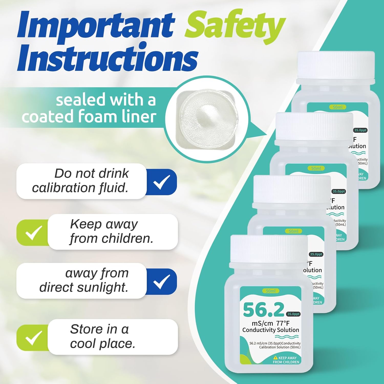 • User-Friendly with Extended Shelf Life Our ready-to-use conductivity calibration solutions save time and effort. With a long shelf life, CIZTADA 56.2 mS/cm calibration solutions require less frequent replacement, offering convenience and reliability.