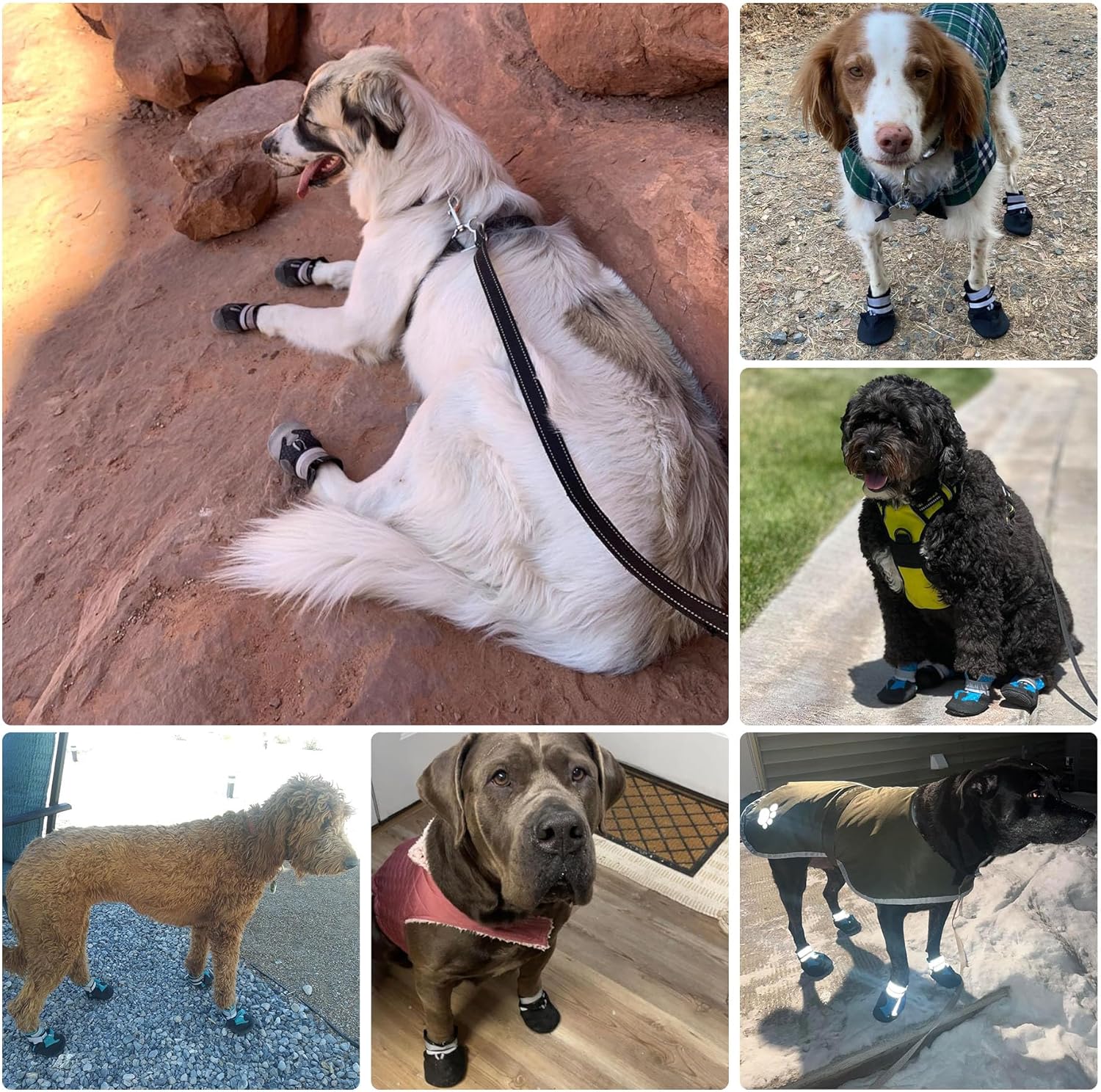 About this item Occasion:These dog boots are Great for Summer Hot Pavement and Winter Cold Pavement,Indoor and Outdoor Activities including Walking,Running,Hiking,Swimming,and other Moderate Performances Premium Paw Protectors: These dog shoes will Keep your Pup's Paws Clean, Dry, and Safe with Protection from hot pavement,cold pavement,snow,salt,sharp rocks,broken glass,burrs and many more.Suitable for for Medium and Large breed dogs,Not for Small breed dogs Comfortable and Breathable:Made with air mesh fabric that keeps debris out while staying comfortable and ventilated all day long.Lightweight, flexible design support natural movement. Designed for Comfort and Protection Nonslip and Durable: New and Improved Durable Rubber Sole with puncture resistant tread that aid in traction. More durable, more slip resistant and softer Easy to Wear & Stay On:These dog booties come with two Reflective Straps. Ensuring that the dog booties will not fall off during walks.The reflective straps provides night time safety. Hand washable/Machine washable.Each Set Includes all 4 Booties › See more product details