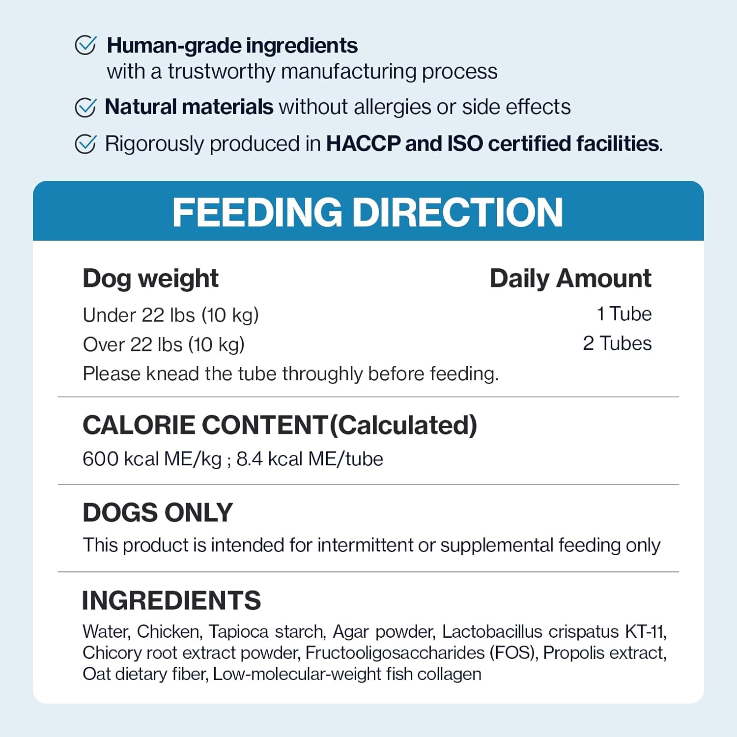About this item From sensitive digestion to itchy skin or weakened immunity, many dogs face daily health challenges. Squeeze Probiotics delivers 3-in-1 support - gut health, skin comfort, and immune balance - in one easy, tasty squeeze. It’s the daily wellness boost your dog deserves. Formulated with patented heat-treated probiotic KT-11 and carefully selected natural ingredients, this next-generation formula is stable, effective, and safe. Designed to support your dog’s overall wellness every day. Half the battle with supplements is palatability. If they won’t eat it, it won’t work. That’s why we made probiotics as enjoyable as a treat. Simply squeeze and serve! Dogs love the flavor, while their gut and overall wellness get the support they need. Many probiotics can cause stomach upset if not carefully formulated. With KT-11, our formula is scientifically shown to be gentle yet effective, delivering benefits without the worry of side effects. Forget the struggle of pills or powders. Our Squeeze format is designed for daily convenience and bonding. No big mess, no stress. Just a simple, enjoyable moment of care that turns supplementation into happiness for both you and your dog. › See more product details