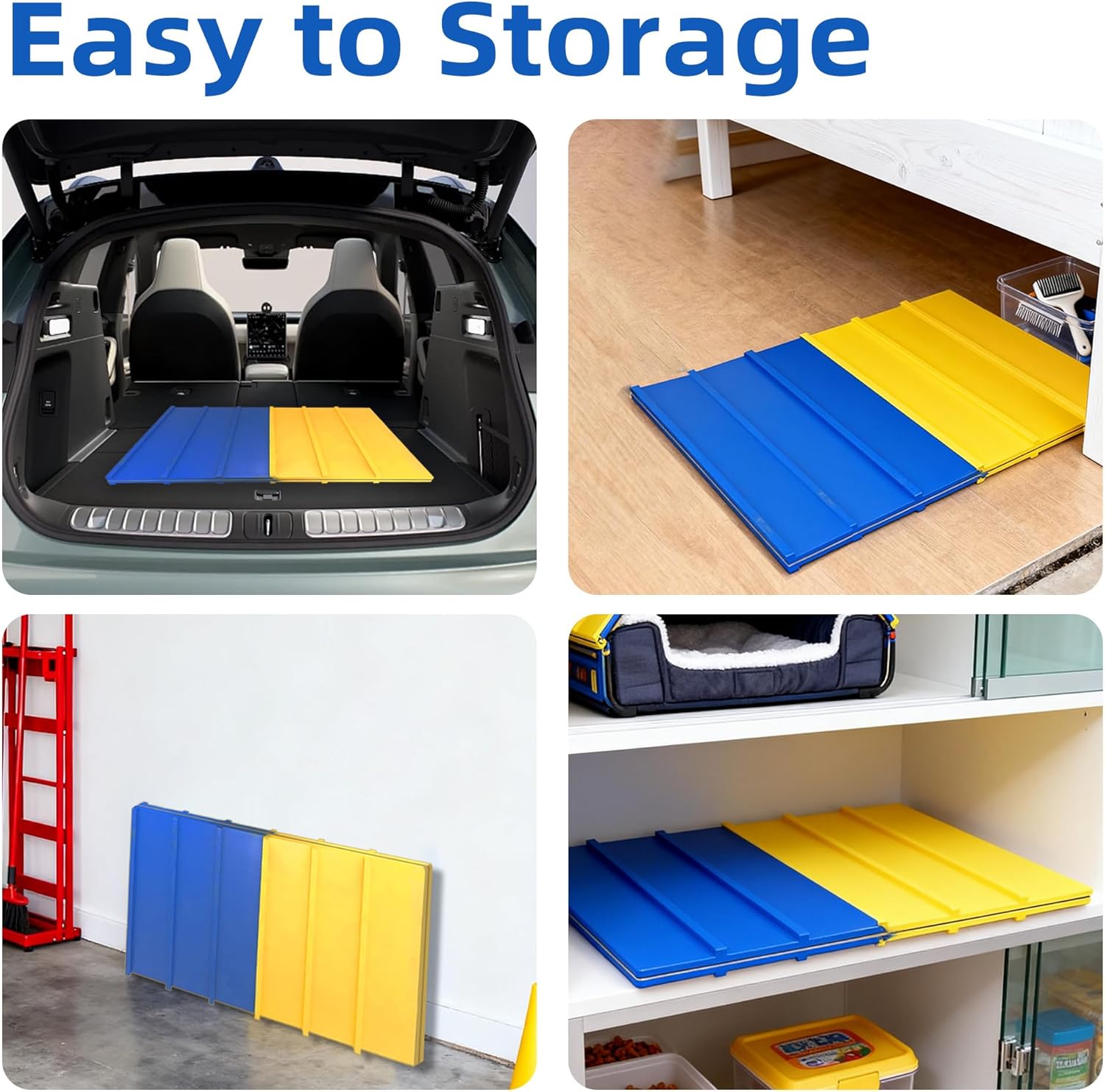 【Adjustable & Foldable Training Ramp】Encourage your dog to stay active and confident with this premium solid wood agility A-frame, thoughtfully designed for both home and professional training. Combining durable craftsmanship, secure design, and easy portability, it's an excellent choice for dog owners and trainers seeking reliable performance with style 【Durable Natural Wood Construction】Crafted from dense, natural wood panels, this A-frame delivers exceptional load-bearing strength—supporting dogs up to 120 lbs. Its stable structure ensures reliable performance through repeated climbs and descents, offering a premium training experience for both small and large breeds 【Adjustable Chain for Custom Angle】Featuring a center support chain with adjustable length, the slope angle can be easily tailored to match your dog's size and skill level. From gentle beginner slopes to more challenging inclines, you can adjust training intensity to fit your pet's progress 【Thick Dual-Side Waterproof Coating】Both sides of each ramp are covered with a thick, water-repellent finish that helps maintain durability in various outdoor conditions. The coating enhances the wood's longevity while keeping the surface easy to clean and visually appealing. Each ramp is reinforced with textured grips that keeps your dog's paws steady during runs and turns. The bright blue and yellow panels enhance visibility, helping your dog focus and move confidently during every session 【Foldable & Easy to Store】Designed for convenience, the A-frame folds completely flat for quick storage and transport. Lightweight yet sturdy, it's suitable for backyards, parks, or training centers—you can set it up anywhere with minimal effort › See more product details