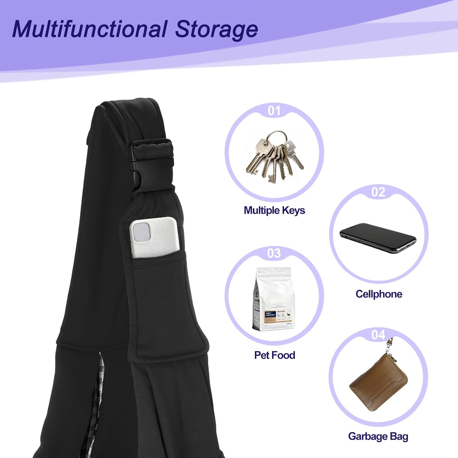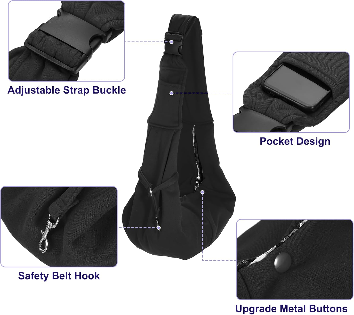 Highlighted Feature: Designed with a secure double safety feature, this pet sling carrier includes a sturdy hook that attaches to your pet's collar or harness, preventing accidental escapes. The wide, padded, and fully adjustable shoulder strap that adapts to all body types. The built-in pocket on the shoulder strap is perfect for storing your phone, keys, wallet, or cards, so you can travel hands-free and still have everything you need within reach.Quality Materials: Crafted with soft and breathable cotton fabric, this pet sling ensures maximum comfort for your furry friend. Its reversible design lets you switch up the look effortlessly, keeping your pet stylish and cozy wherever you go.Intended For:Designed for small to medium-sized pet, this pet sling carrier accommodates a diverse range of animals. It's suitable for various cats, different little dogs varieties, and even small animals like rabbits, guinea pigs, and parrots. The bag suits multiple outdoor activities, such as cycling, hiking, camping, and walking. With its thoughtful design, it ensures both you and your pet can enjoy a comfortable journey together.Product Specifications:Total Size: 80 x 60cm/31.5 x 23.62inch(L x W)Shoulder Width: 12cm/4.72inchShoulder Strap Length: 74cm/29.13inchMaximum Pet Weight: 7.5kg/16.53lbsPackage List: 1Pcs*Pet Sling CarrierImportant Notes:1. Please ensure the pet sling carrier is securely fastened before travel. Avoid overloading the backpack with too much weight to maintain stability and comfort for your pet.2. Regularly check the pet sling carrier for any wear and tear to ensure safety.