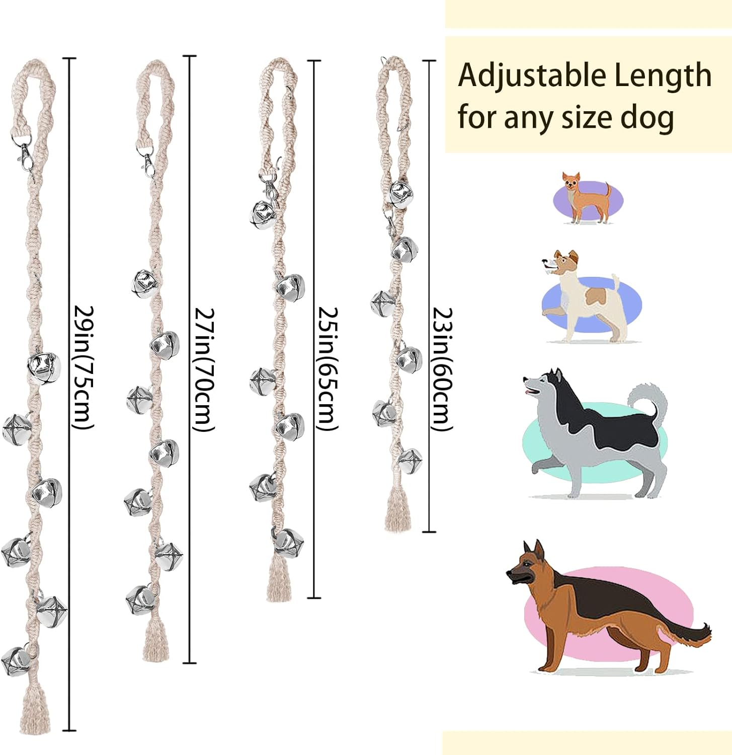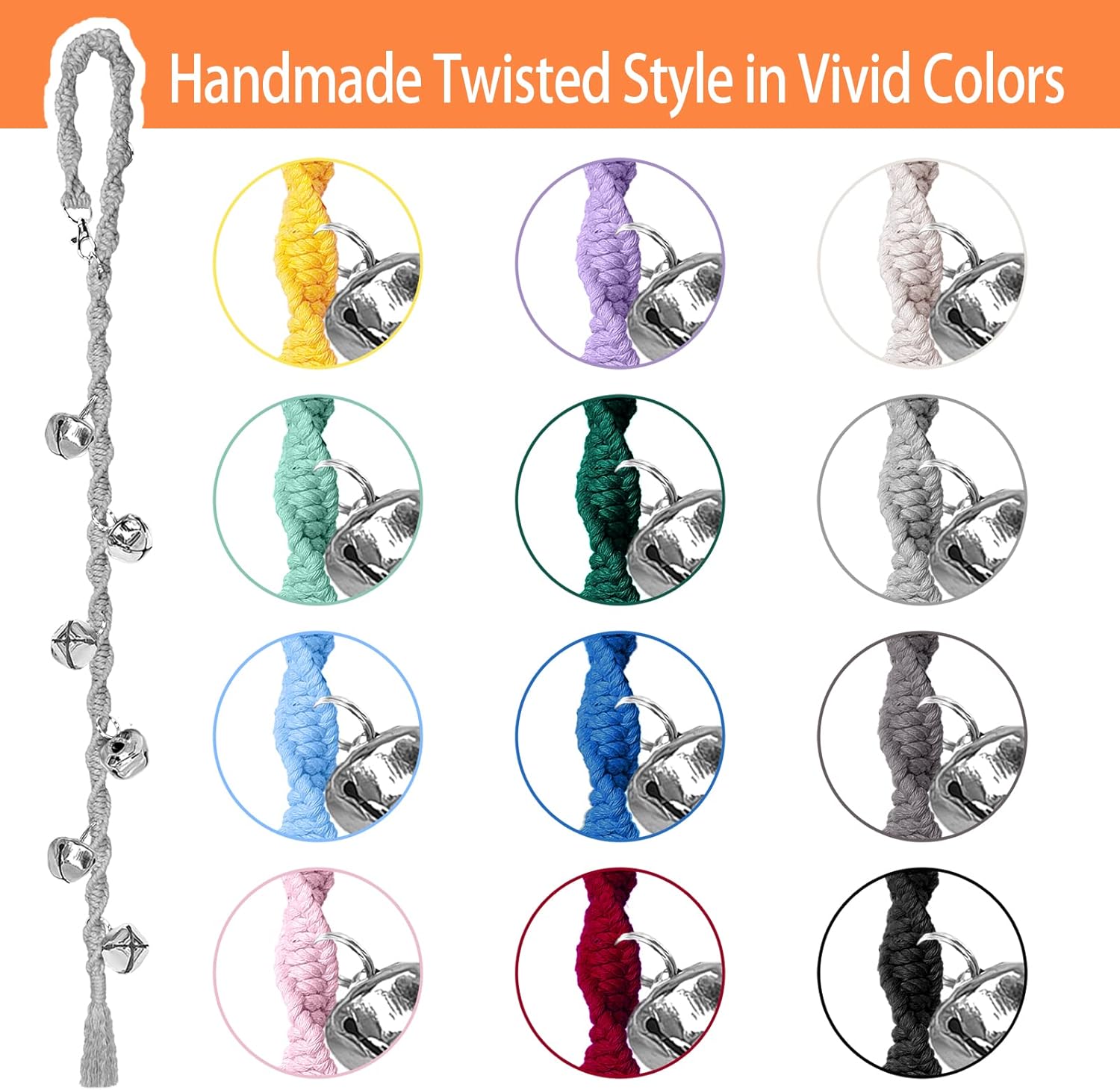 【Handmade, Attractive Design】Handcrafted with exquisite and sturdy rope and high quality metal bells, our ring bells for training dogs to go outside come in beautiful twisted style with SO MANY COLOR options! 【Long Enough for Any Size Dog】The dog doorbell has a length of 35"(90cm) , with a snap button for you to adjust the length according to the door and dog. Longer than most dog door bells and adjustable for any size dog from small to large. 【Loud and Clear Sound】The Doorbells for dogs are in 3.5cm big size, whose crystal clear sound is loud enough to be heard throughout the house, but not so loud as to be obnoxious. 【No More Accidents by the Door】Simply follow this functional "Three-Step Easy Training" and take the time and patience to train your dog: 1.Train your dog to touch the training bells with their nose or paw and reward with a treat. 2. Encourage your dog to ring the bell at the door and reward with a treat. 3.Train your dog to ring the bell only when he needs to pee. 【Full Satisfaction & Quality Assurance】Our Doorbells for dogs come with Full Satisfaction and 1-year warranty(does not cover chewing). › See more product details
