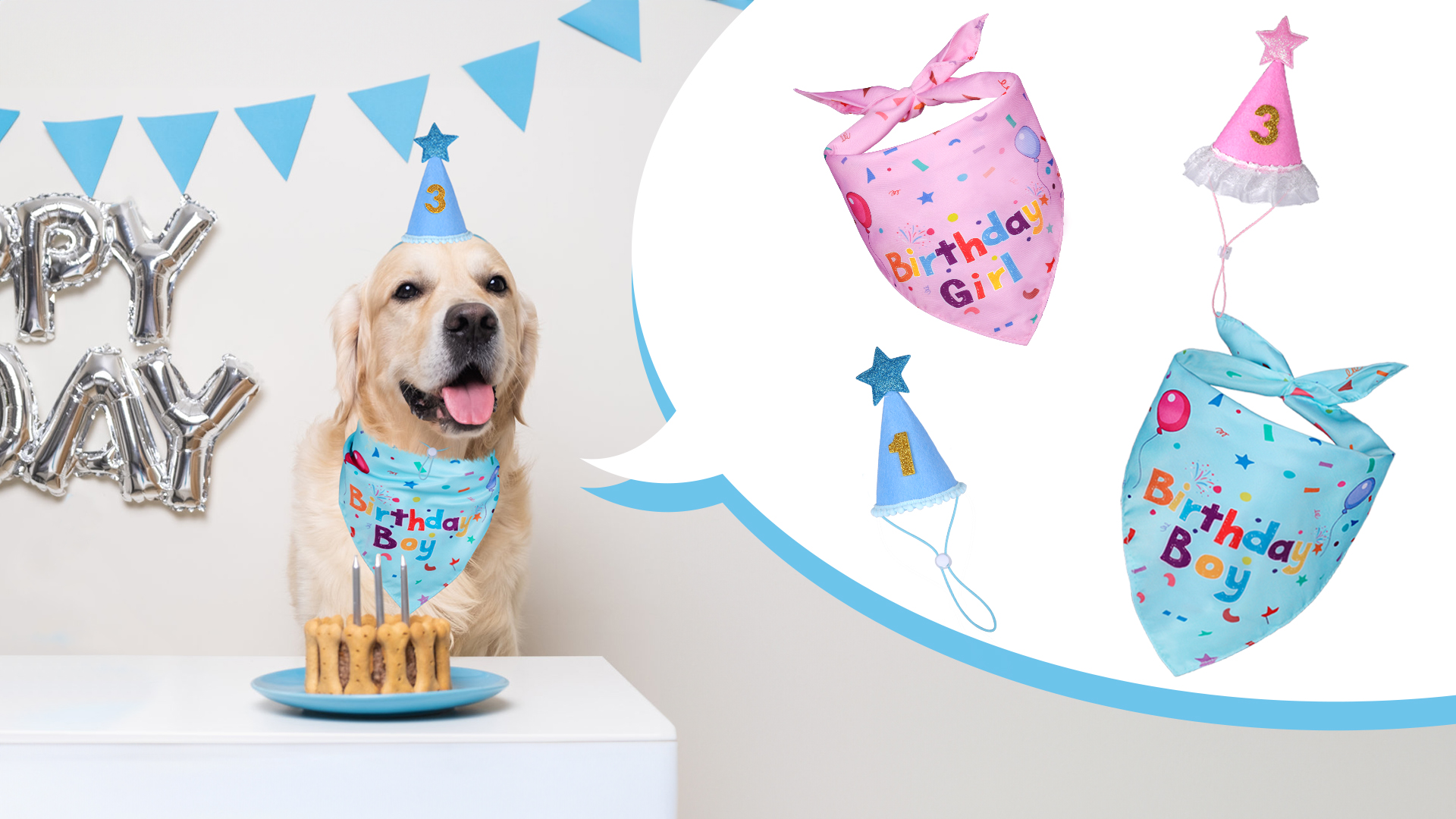 About this item Dog Birthday Party Supplies: 1 pc dog party hat with 0-8 numbers (6 can be turned into 9), 1 pc birthday dog bandana, Get ready to dress up your furry friend in style in dog birthday party Super Soft Material: This dog birthday bandana is made of long-lasting cotton material, super soft and breathable. Even in the blazing summer sun, one is not afraid of a little bit of stuffy heat! Double-layer stitching design is thicker and more solid ! Definitely, This dog birthday outfit is perfect for dog birthday boy Adjustable Birthday Dog Hat: This lovely dog hats has pretty blingbling pentagram on the top of the hat. Elastic rope inside is adjustable,ensuring a snug fit for any birthday dog size. The dog birthday boy hat is made of fabric rather than paper, enough for use for years to come. It's fantastic addition to any pup's wardrobe and special occasions Double Sided Design:The birthday bandana for dogs are double sided, one side has a cute print of "It's my Birthday," and the other side has a sweet print of "Birthday Boy." Ease of use FIT FOR DOGS NECK SIZE UP TO 21 INCH: The bandanas measures 27.5 x 18.1 x 18.1 inch, fit for dogs neck size up to 20 inch, and the hat measures 3inch(Diameter) x 4.4inch(Height) ,perfect for most small, medium, large dogs. Please measure your pet neck girth before ordering, and leave room to tie out Dog Birthday Present : These dog birthday party set will make your puppy more charming and adorable. Ideal birthday present for dogs and your friends with furry friends! Let's take photo and record the happy moment › See more product details
