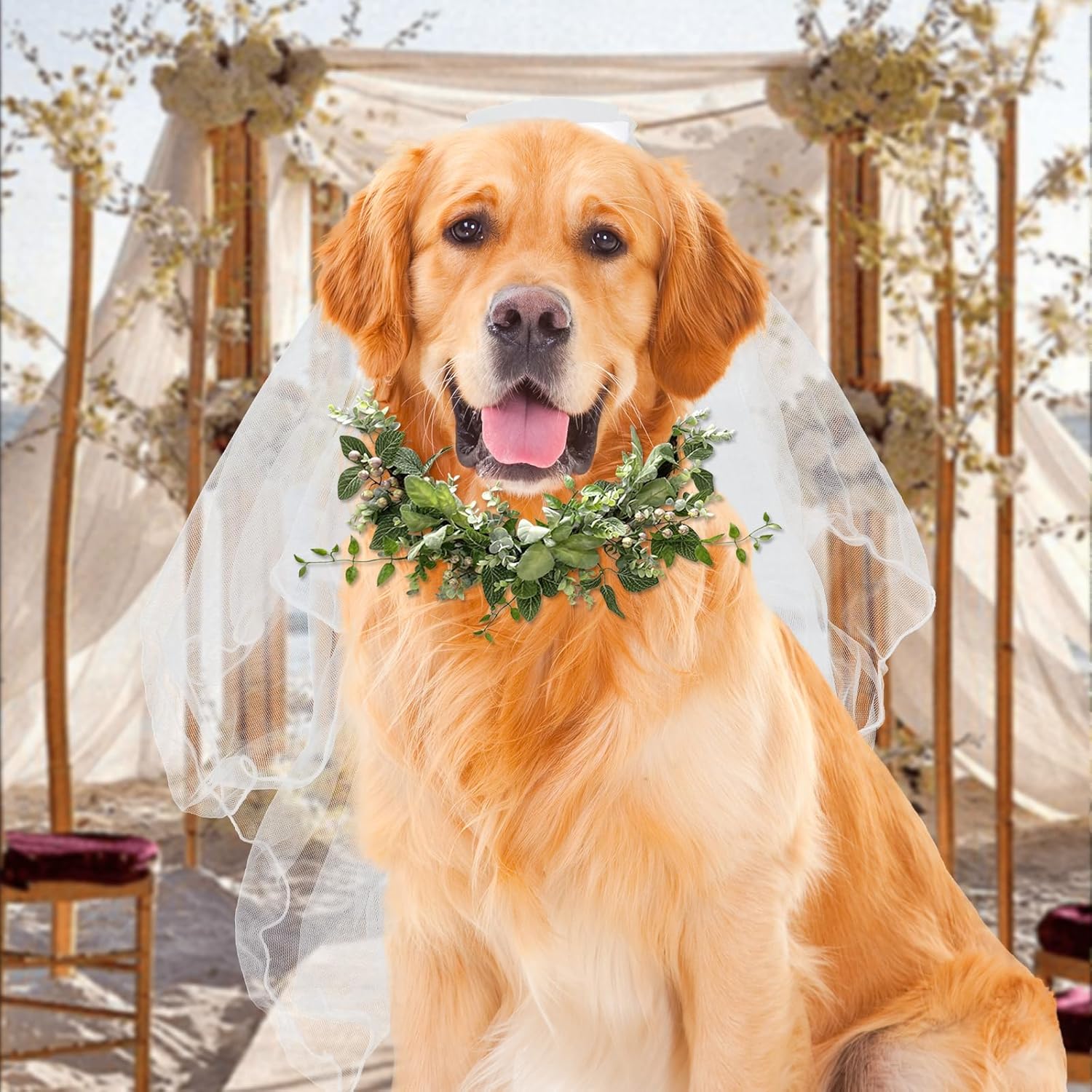 Product name:Pet Wedding Veil with ClipMaterial: MeshPacking list:1pcs*Pet veil dress with bow clip