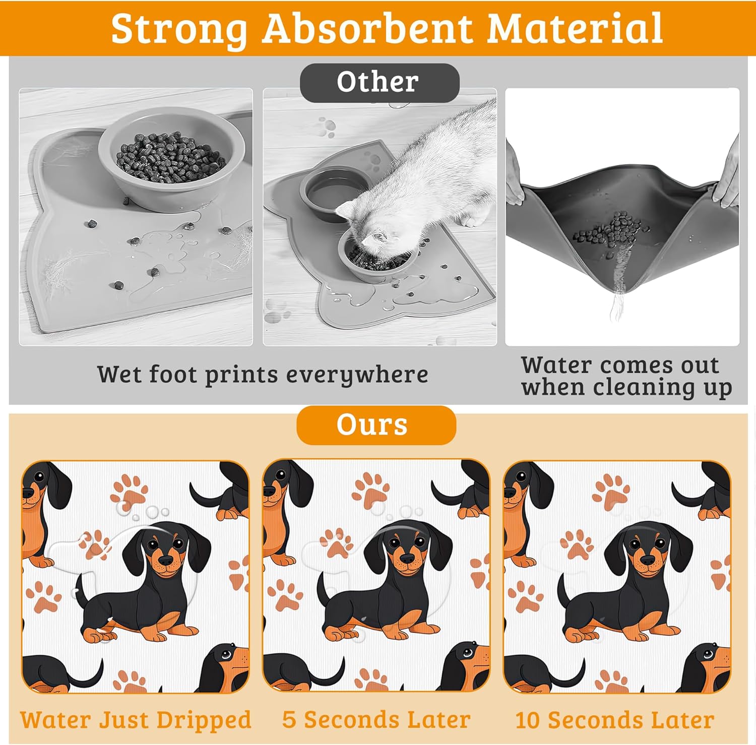 About this item Material:Made from tear resistant and chew resistant fabric that withstands claws and paws without fraying. Sturdy yet soft texture provides comfort while ensuring long term use. The design makes it a reliable pet feeding mat for both cats and dogs. High Absorption:These Pet Mat made with highly absorbent fabric that quickly soaks up spilled water, milk, or food messes to keep the feeding area clean and dry.Helps reduce wet paw prints and sticky residues.A practical dog bowl mat or pet feeding mat for messy eaters and playful drinkers. Non Slip Backing:Anti skid rubber base grips firmly to the floor to prevent sliding or bunching while pets eat or drink. The waterproof layer blocks spills from seeping through, protecting wood, tile, or laminate floors from damage. Ideal as a dog feeding mat or cat food mat in any home. Easy to Clean:Designed with a smooth surface that resists hair, dust, and stains. Simply wipe with a damp cloth for everyday care or rinse under running water for a deeper clean. Washable and quick drying, making this pet food mat a convenient solution for daily use in multi pet households. Multi Purpose:Works perfectly under food bowls, water dispensers, or automatic feeders to prevent spills and messes. Can also be used as a cat litter mat or resting mat. Lightweight and rollable for easy storage or travel, making it a thoughtful and practical gifts for pet owners. › See more product details